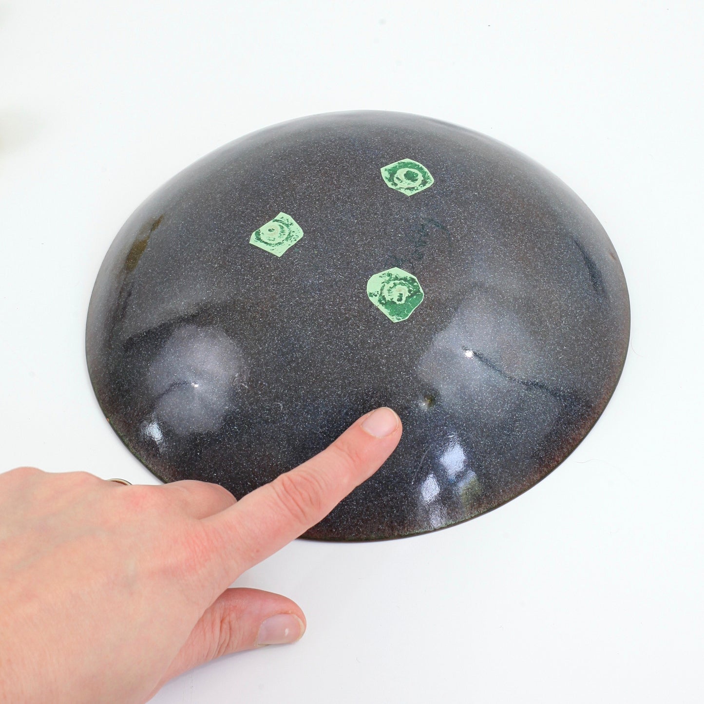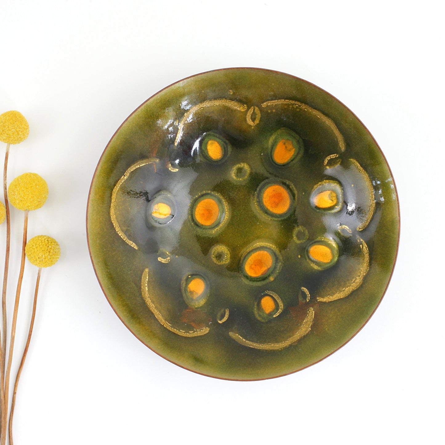 SOLD - Mid Century Moss Green & Gold Enamel Bowl