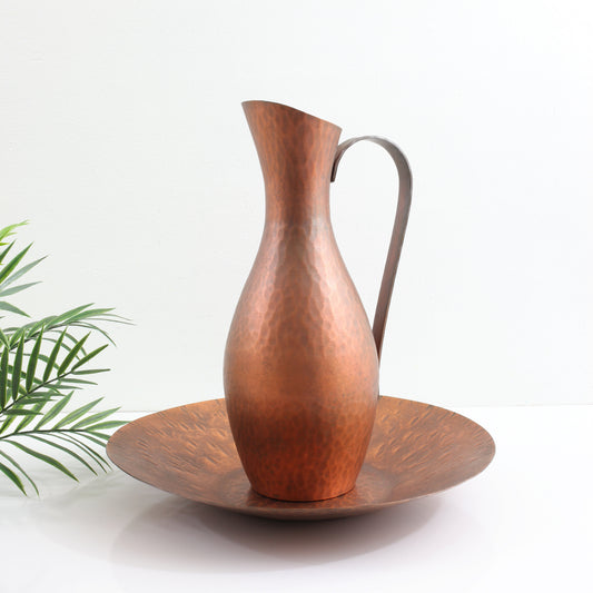 Mid Century Modern Hammered Copper Pitcher & Plate
