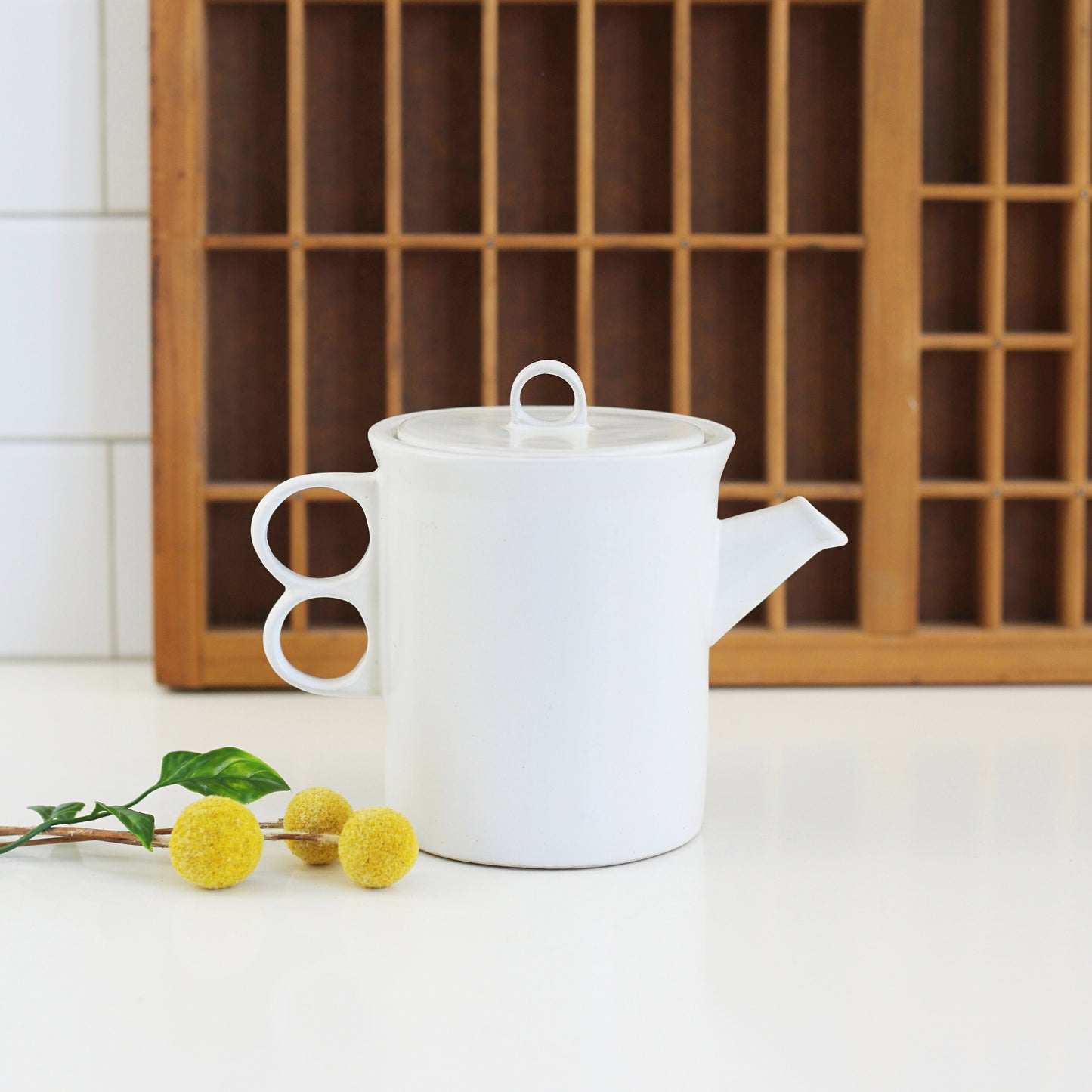 SOLD - Bennington Potters White Trigger Handle Teapot