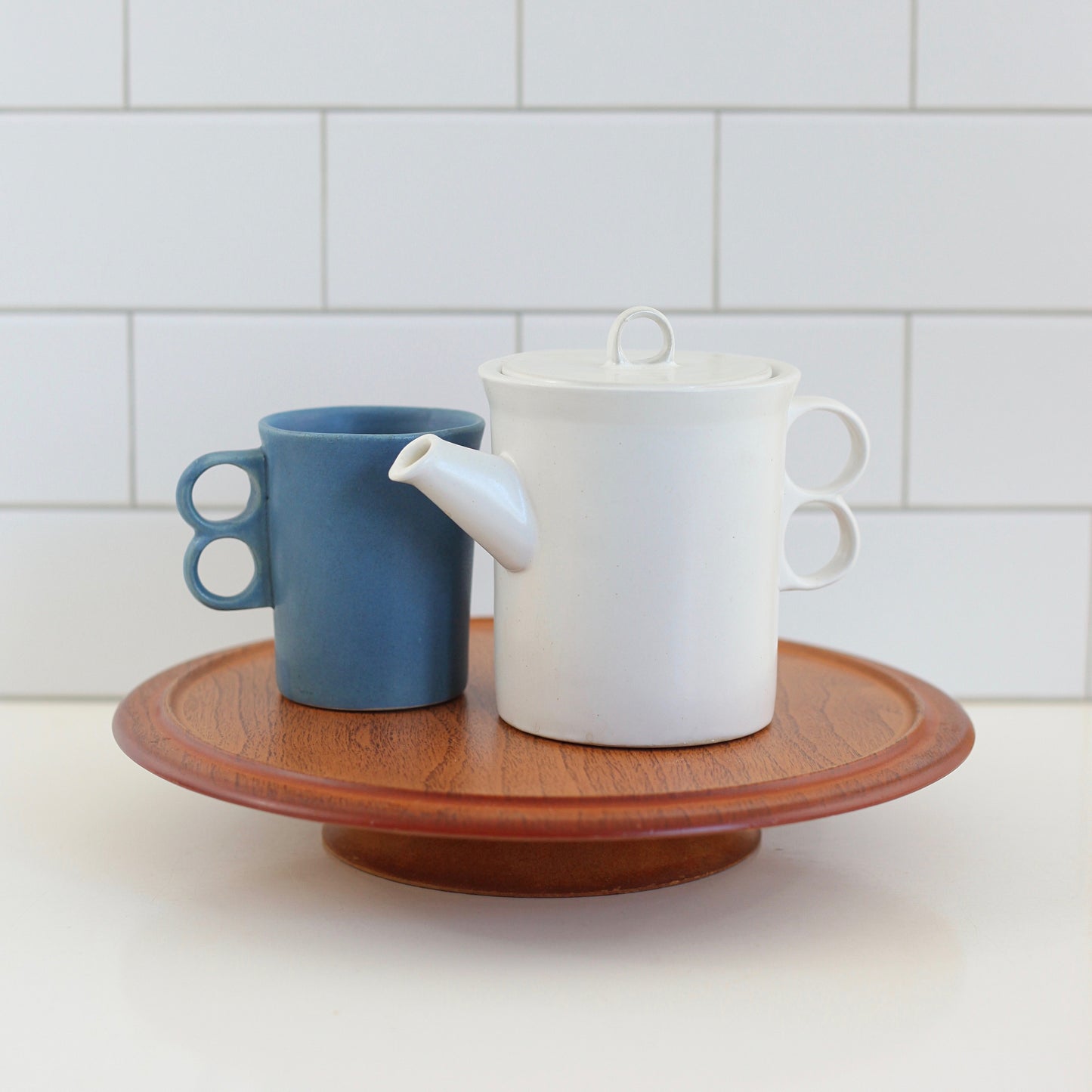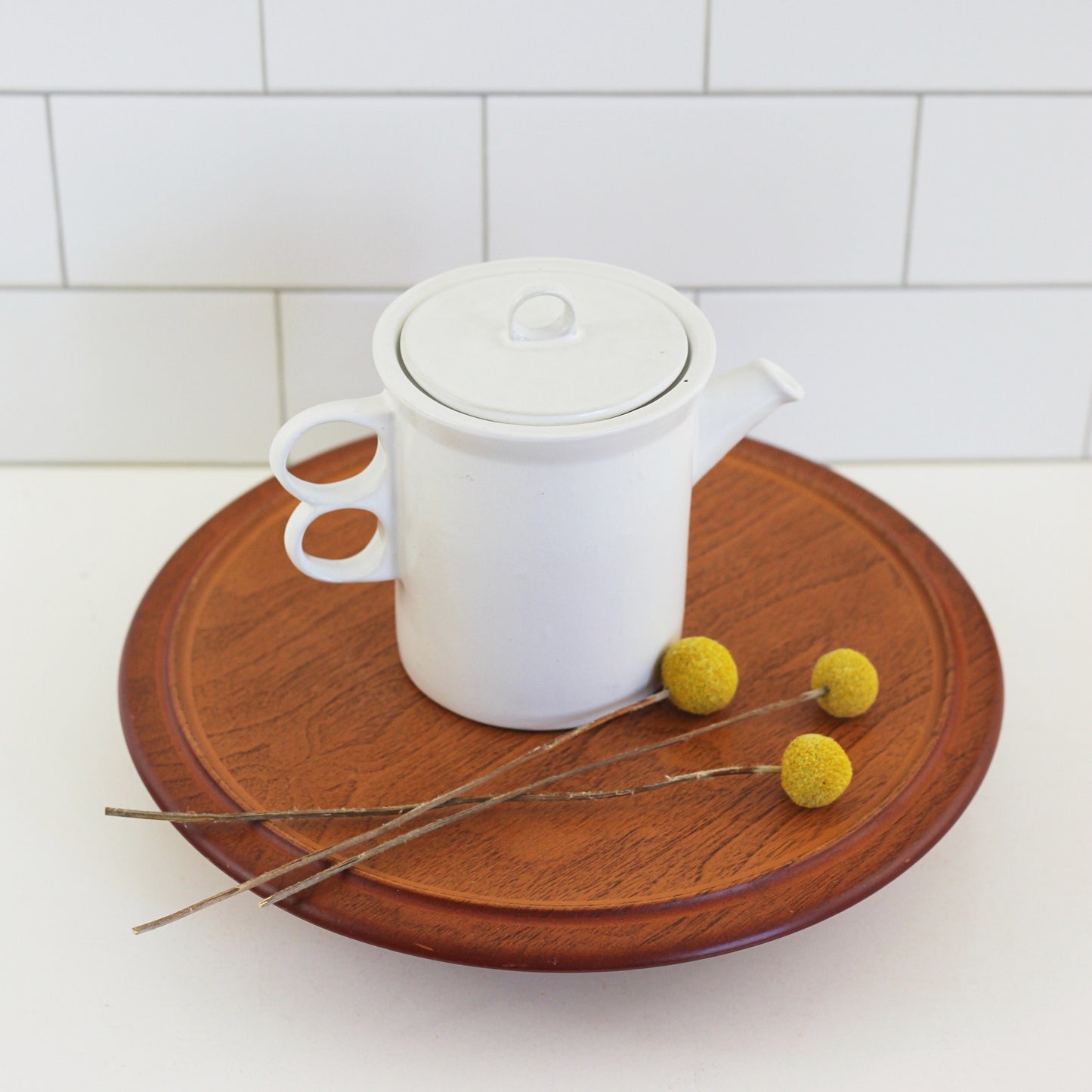 The only thing better than a piping hot cup of your favorite tea is one poured from this gorgeous mid century teapot! This beautiful teapot designed by David Gil for Bennington Potters of Vermont. Hand made and hand glazed, this pretty pot has a beautiful organic shape and a double handle or 'trigger handle' that Bennington Potters is known for. Perfect for serving up a hot cup of tea or coffee, and pretty enough just to display and admire! A hard-to-find piece that's as beautiful as it us useful!