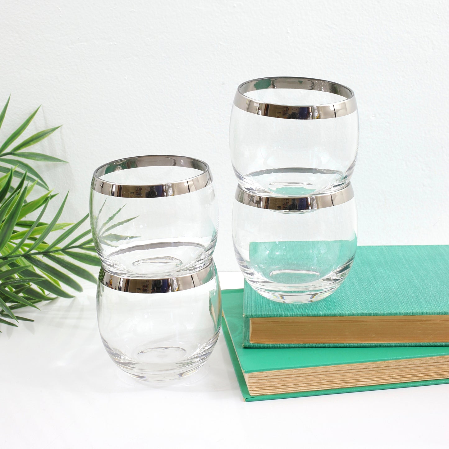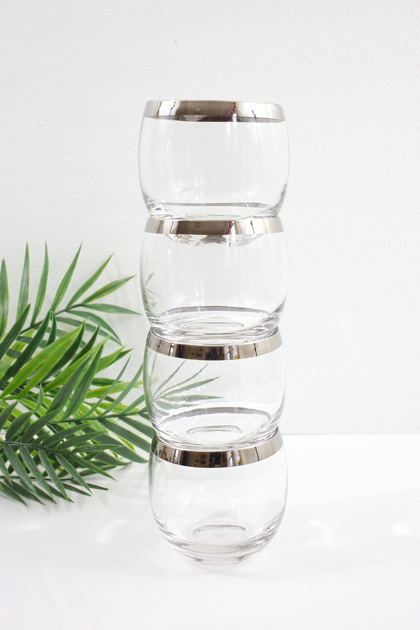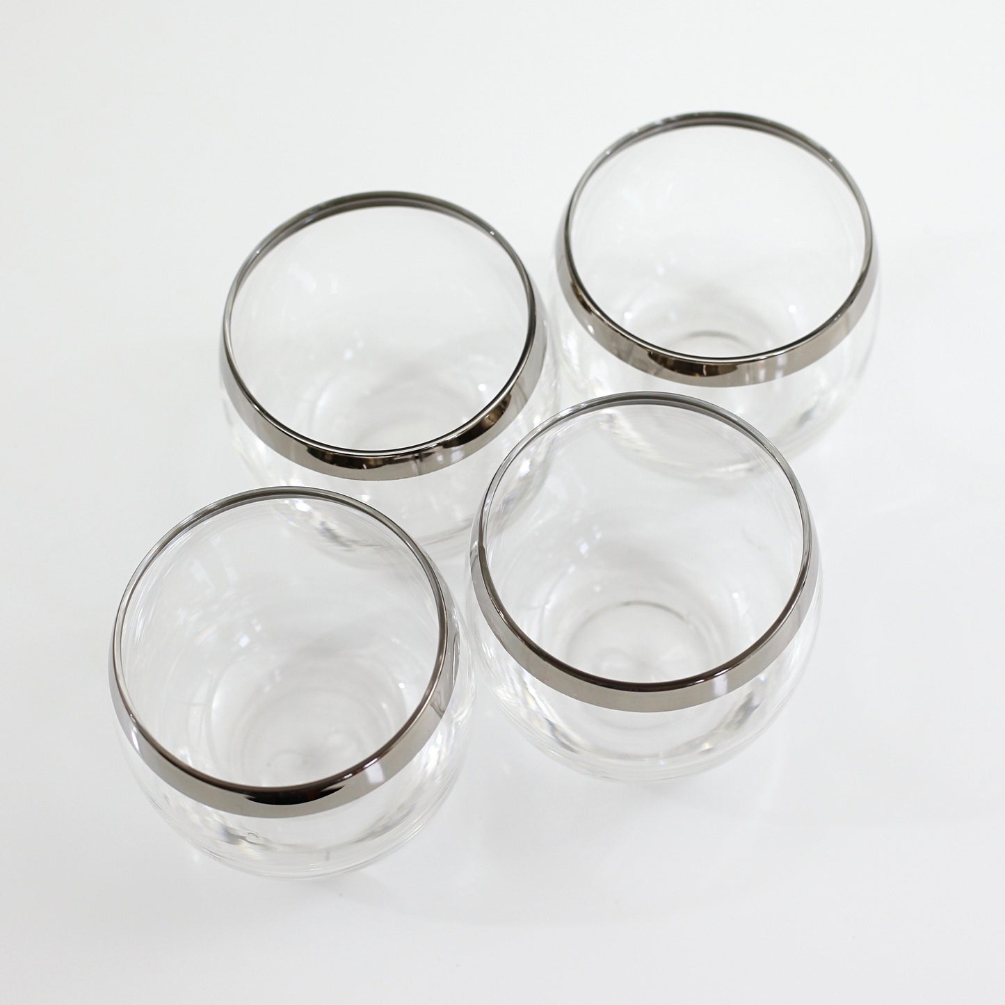 This oh-so-classy set of four vintage Dorothy Thorpe inspired Mad Men roly poly glasses is the perfect example of mid century barware. With a lovely rounded shape that fits super nicely in your hand, these tumblers have heavy rounded bottoms and a classy silver stripe around the ridged rim. Perfect for a glass of your favorite drink, with enough vintage class to make even Don Draper proud.
