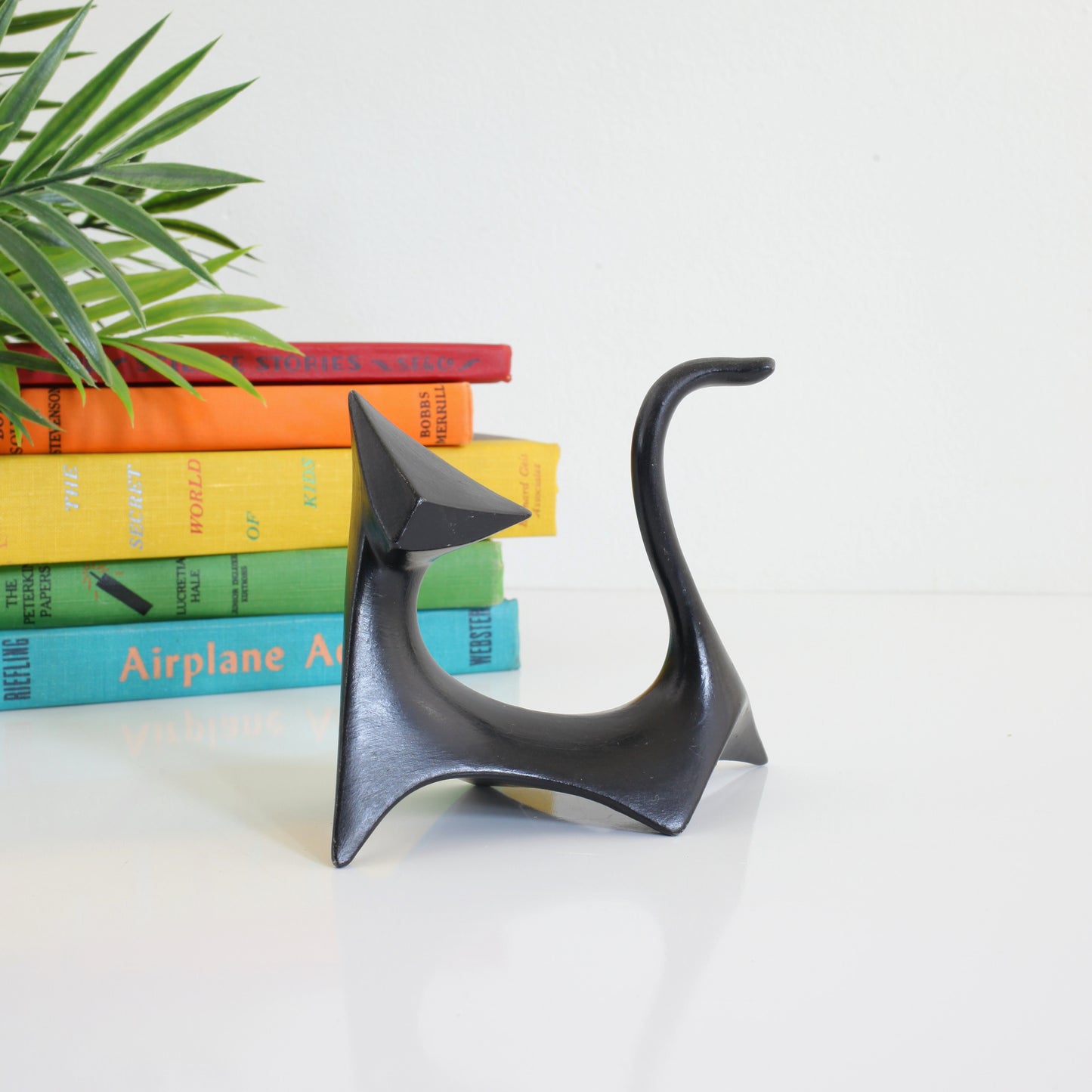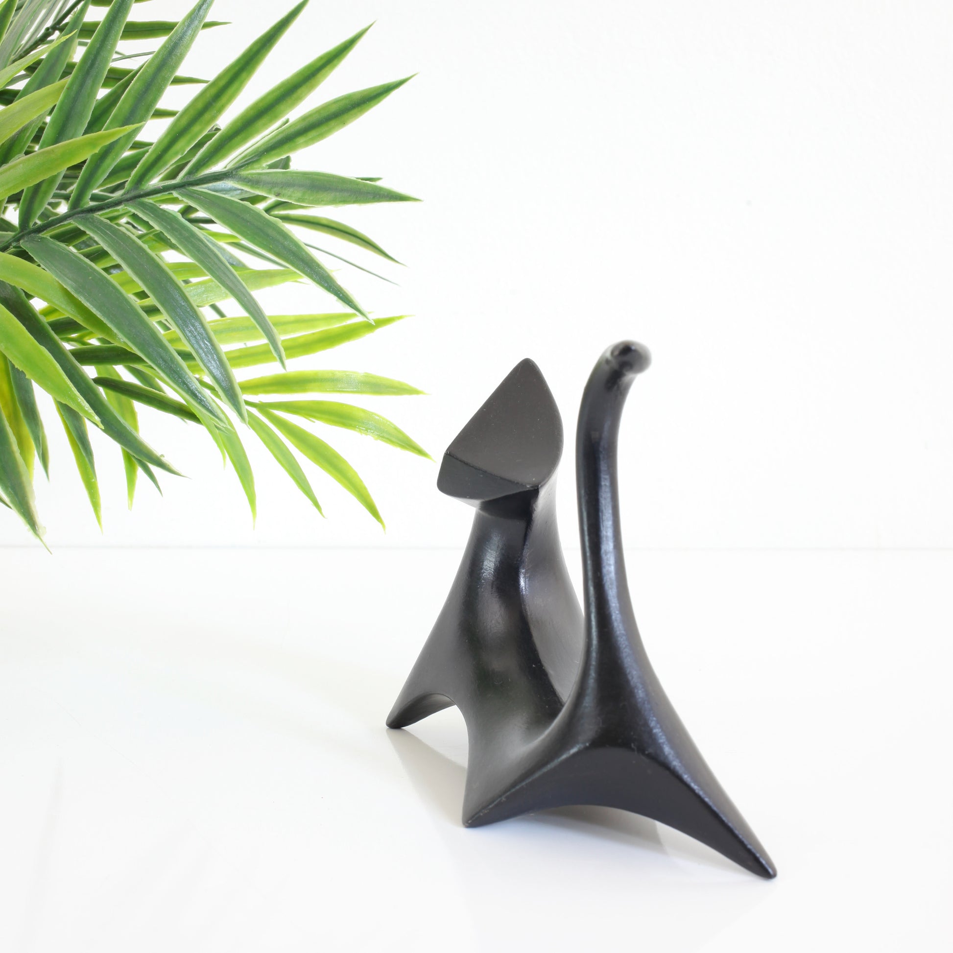 This fabulous mid century modern cat figurine is so retro and fun! Made in 1967, this pretty kitty is made of ceramic and finished with a deep black glaze. The purrrr-fect way to add some mid century modern charm to your decor!