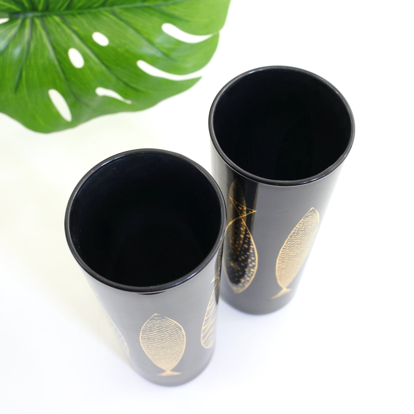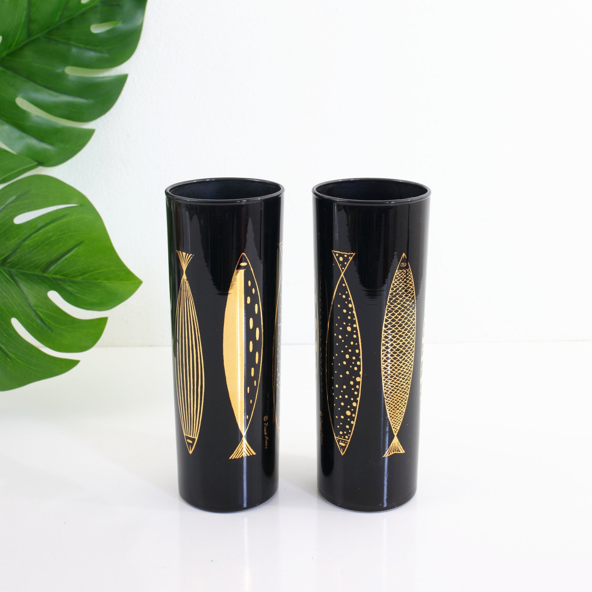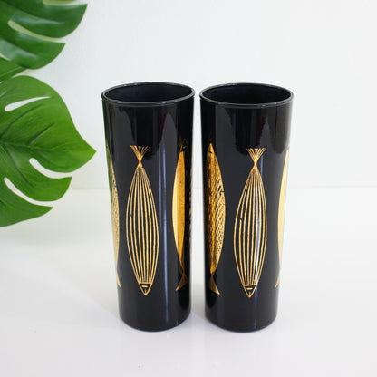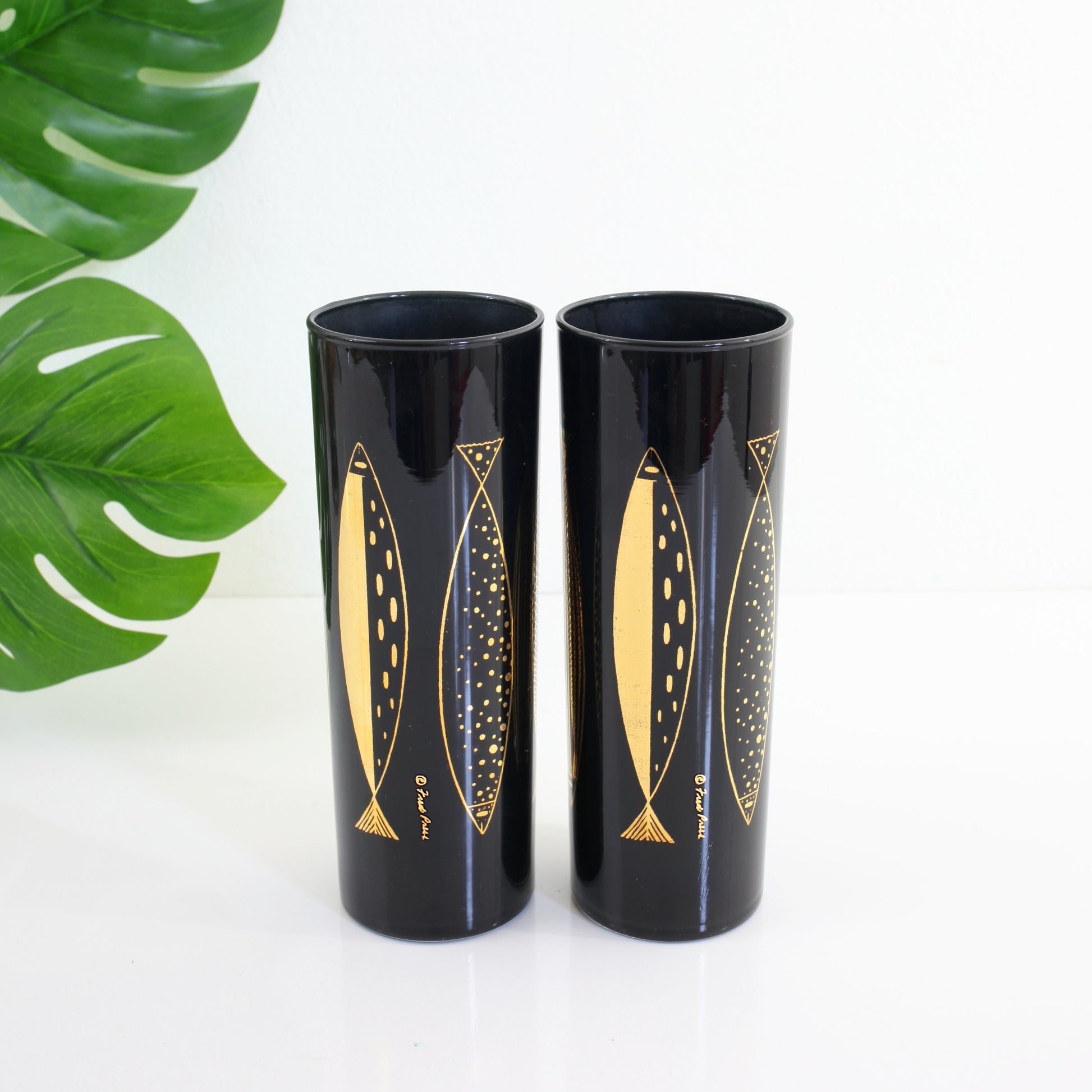 SOLD - Mid Century Modern Black & Gold Fred Press Fish Glasses
