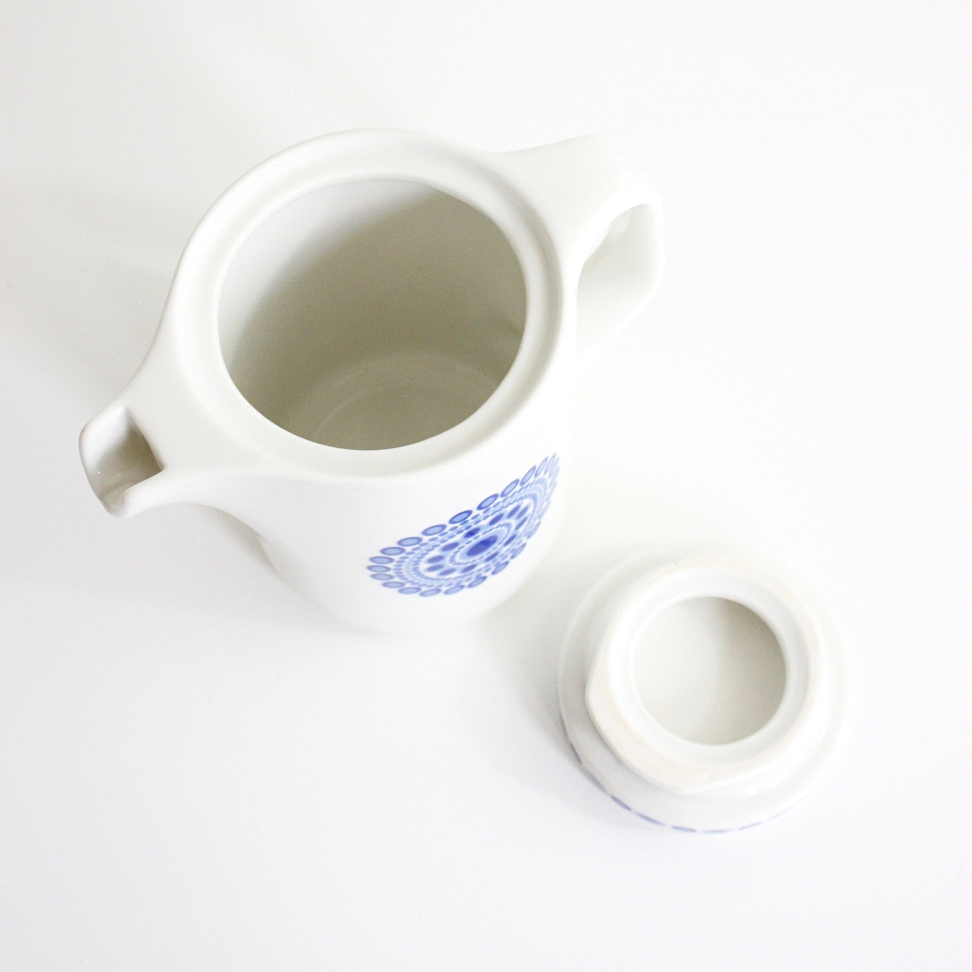 SOLD - Mid Century Modern Ceramic Coffee Pot / Eurotel Blue and White Ceramic Coffee Pot