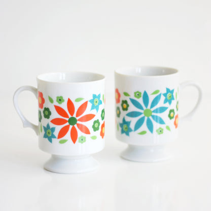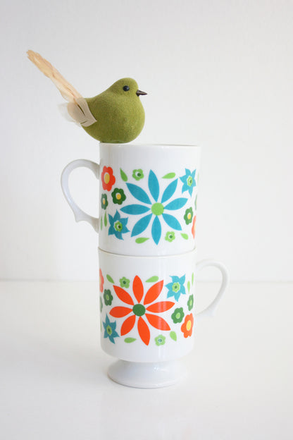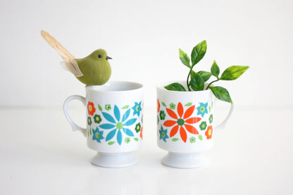 SOLD - Mid Century Modern Colorful Flower Mugs