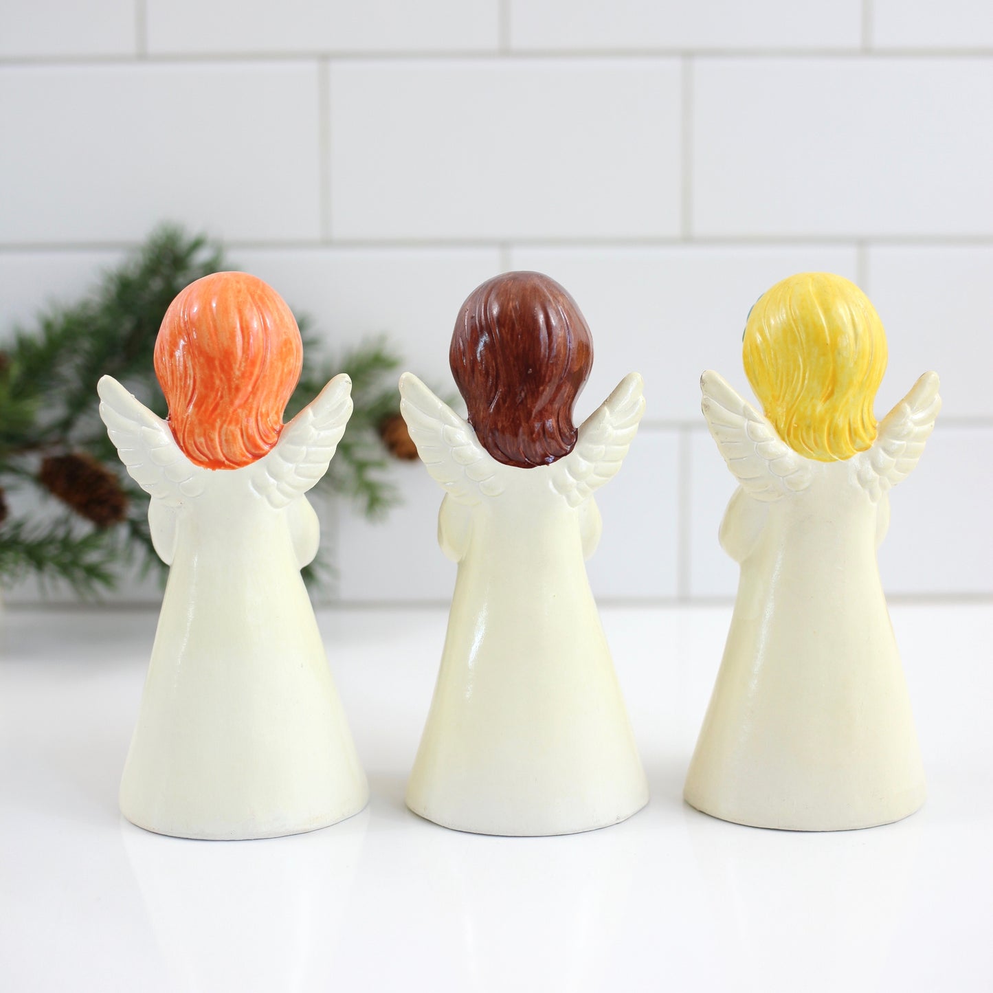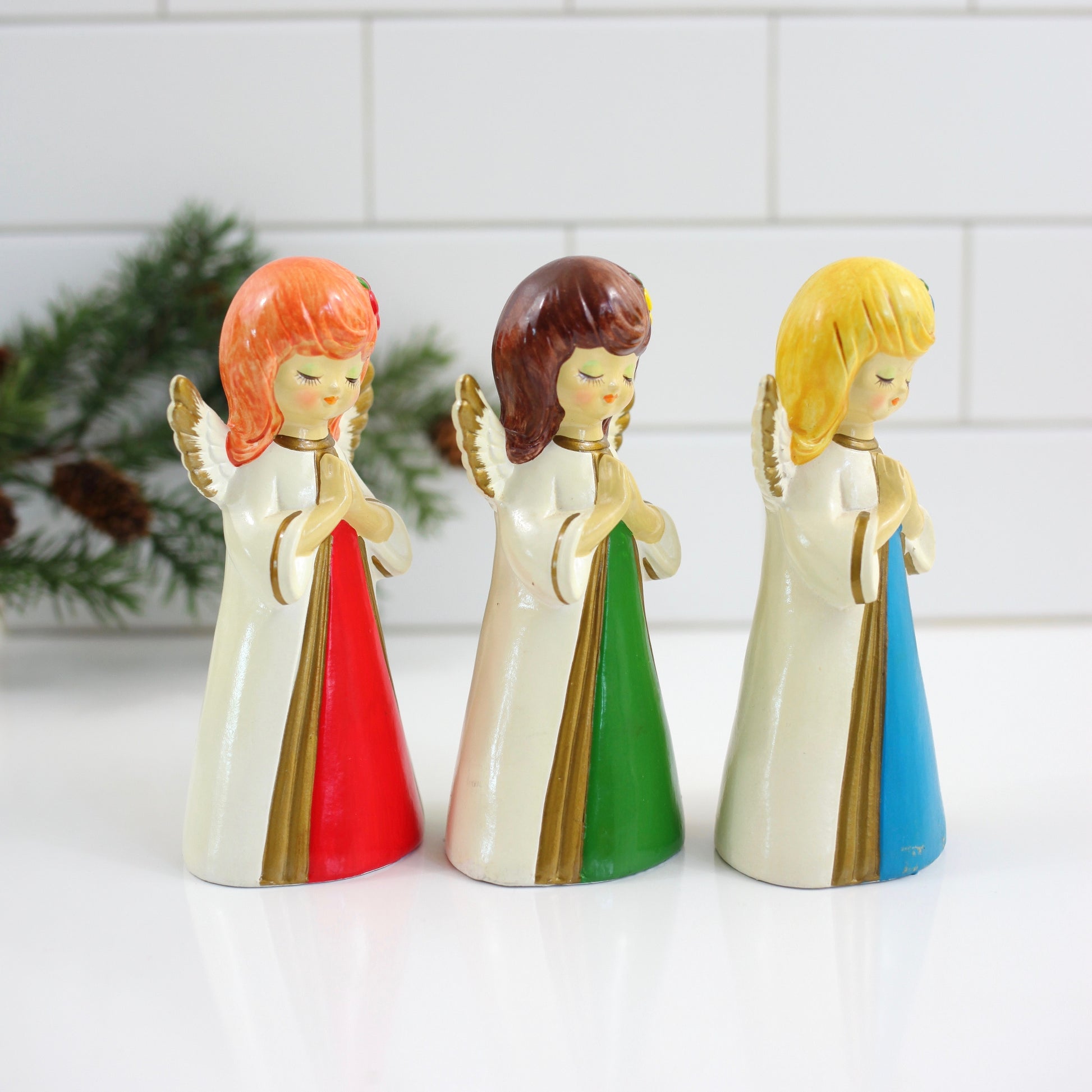 ➝ In fantastic condition! No chips, cracks, or scratches. Surfaces show minor wear and signs of age. The white parts of their dresses have aged to a creamy off-white. The blue angel has a small spot of bright white paint on her side, where the rest of her dress is more of an off-white. Not noticeable unless you're really looking for it - shown in the last photo.