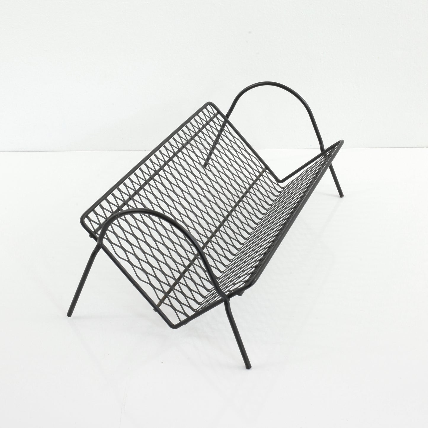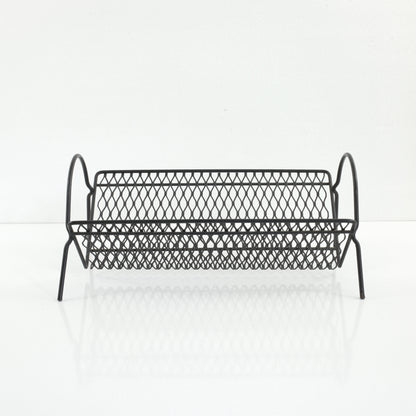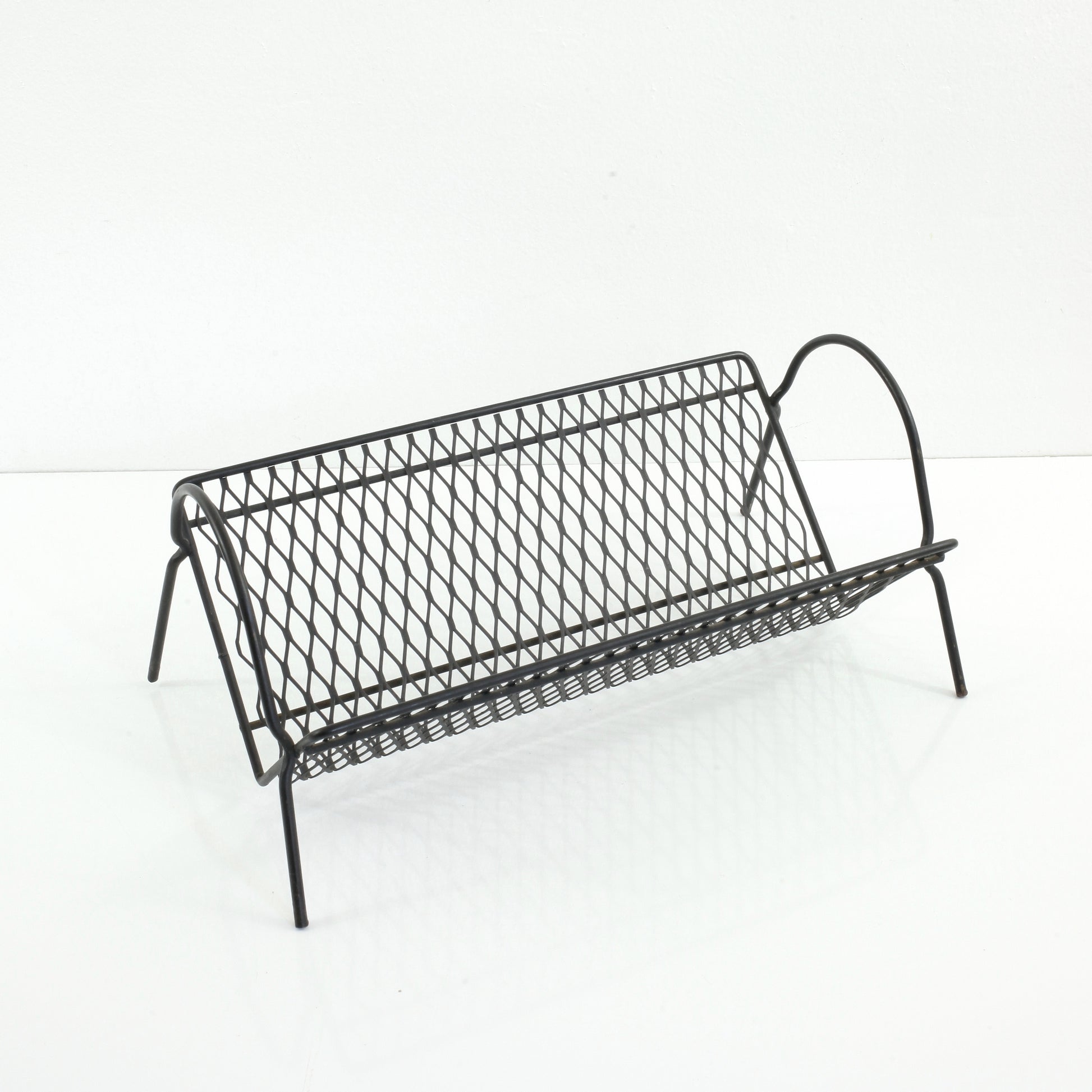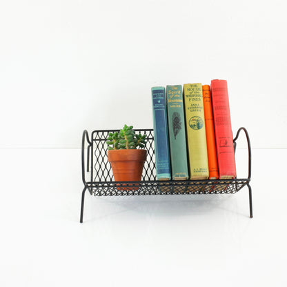 This mid century modern metal book rack is as fun as it is functional! Made of sturdy metal with a matte black finish and a fun geometric pattern, this desktop book shelf is the perfect way to display your favorite books, CDs, DVDs, or 45 records.