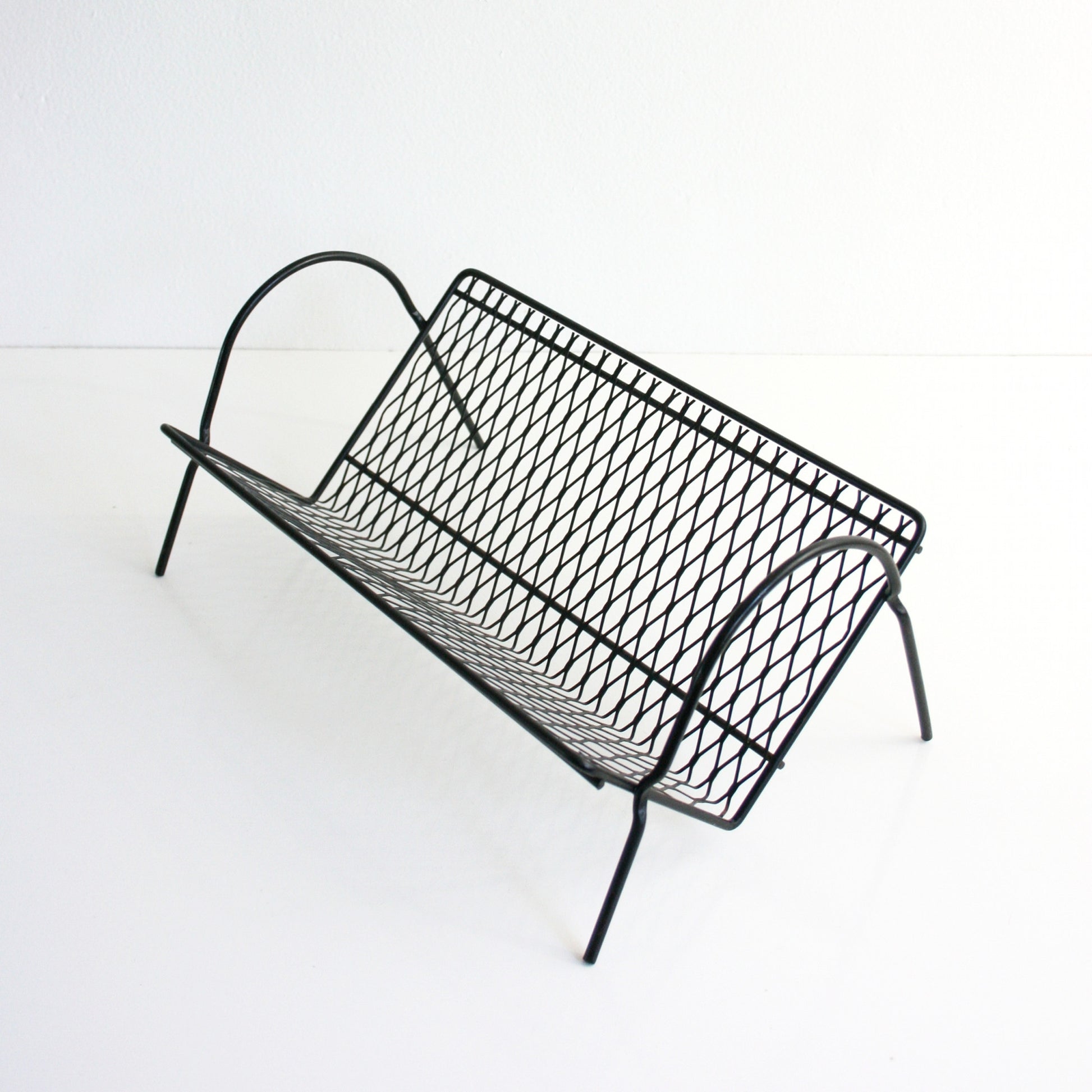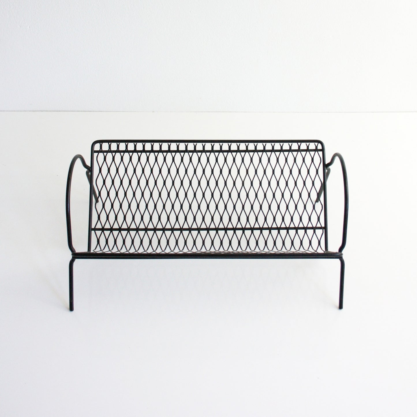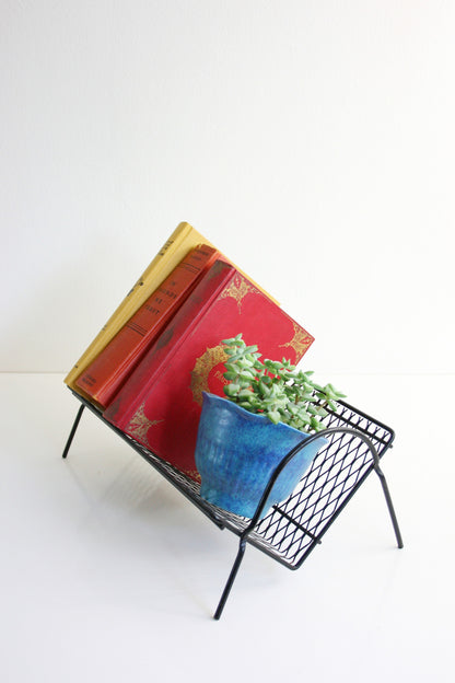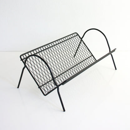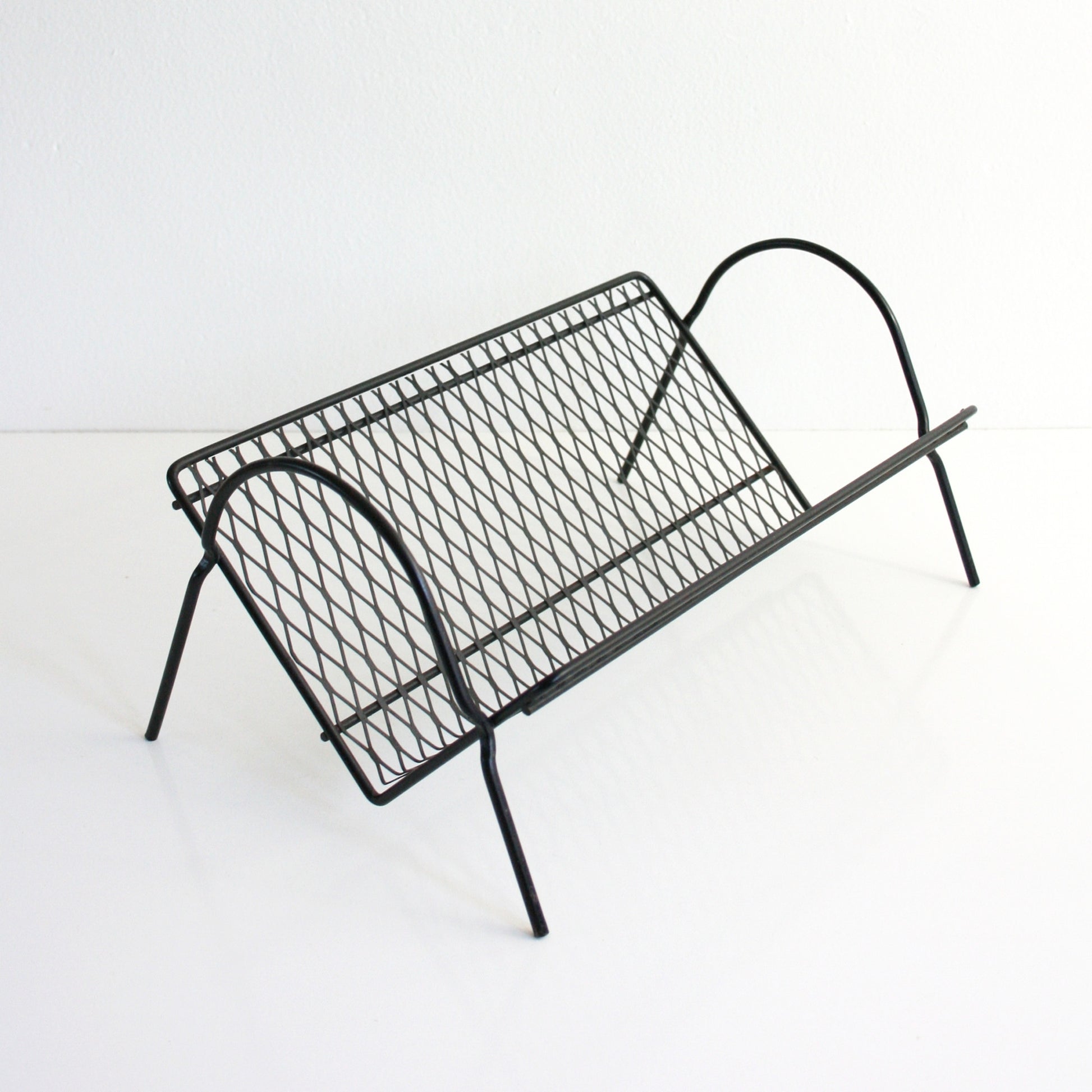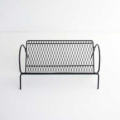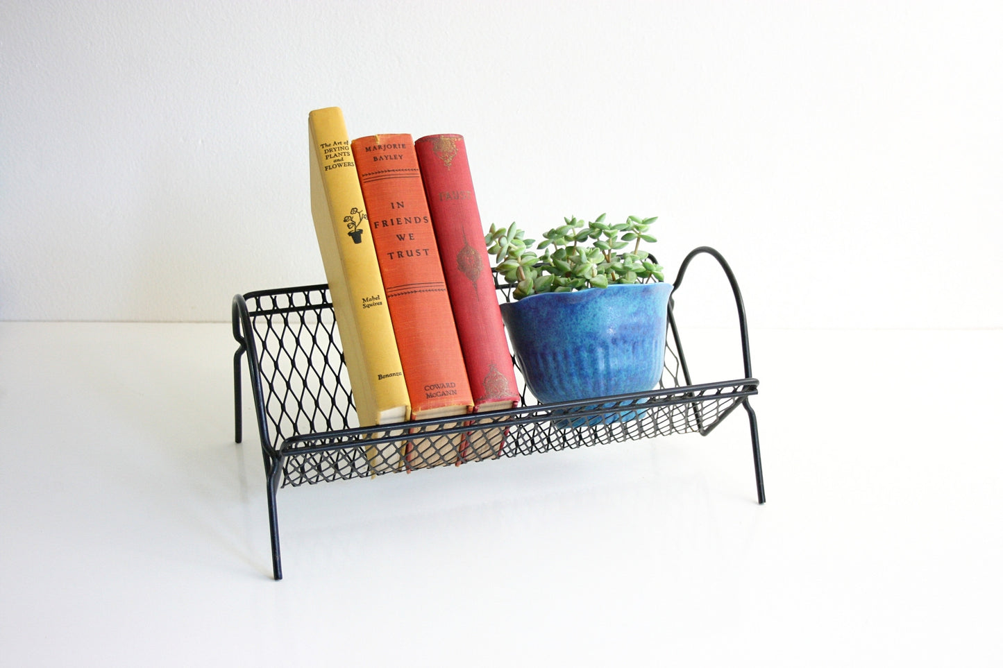 SOLD - Mid Century Modern Metal Book Rack / Vintage Black Metal Desktop Book Shelf