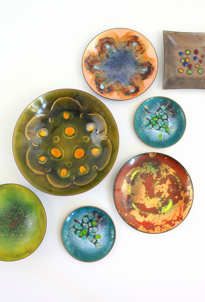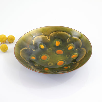 SOLD - Mid Century Moss Green & Gold Enamel Bowl