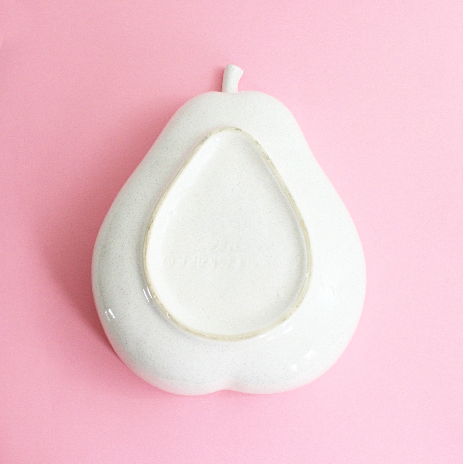 SOLD - Mid Century Pfaltzgraff Ceramic Divided Pear Bowl / Vintage White Pear Serving Bowl