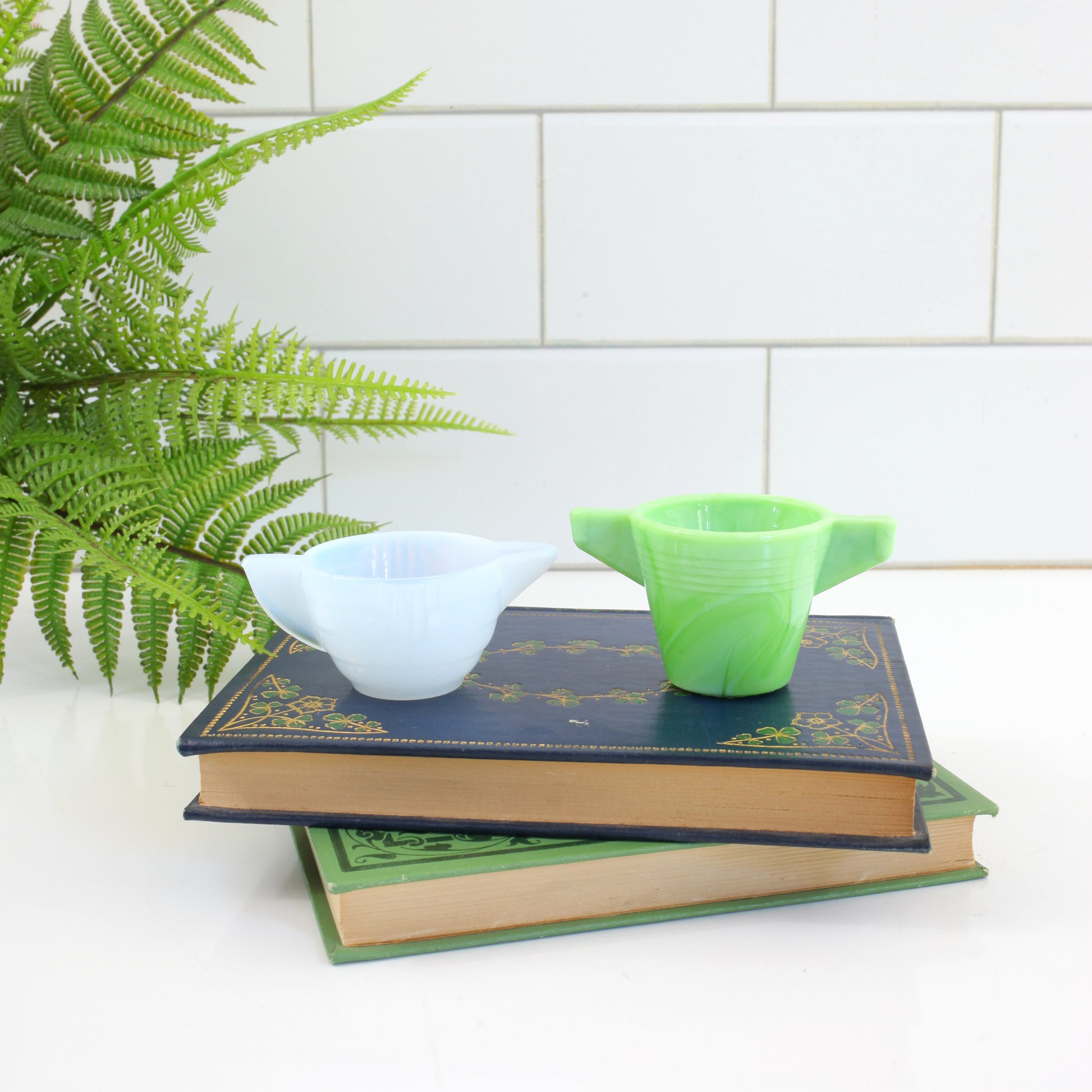 This beautiful vintage 1940s child's tea set is so sweet! Made by Akro Agate Co. of Akron, Ohio (formerly a manufacturer of glass marbles!), this slag glass set includes a variety of pieces perfect for a tiny vintage tea party! Set includes the following: