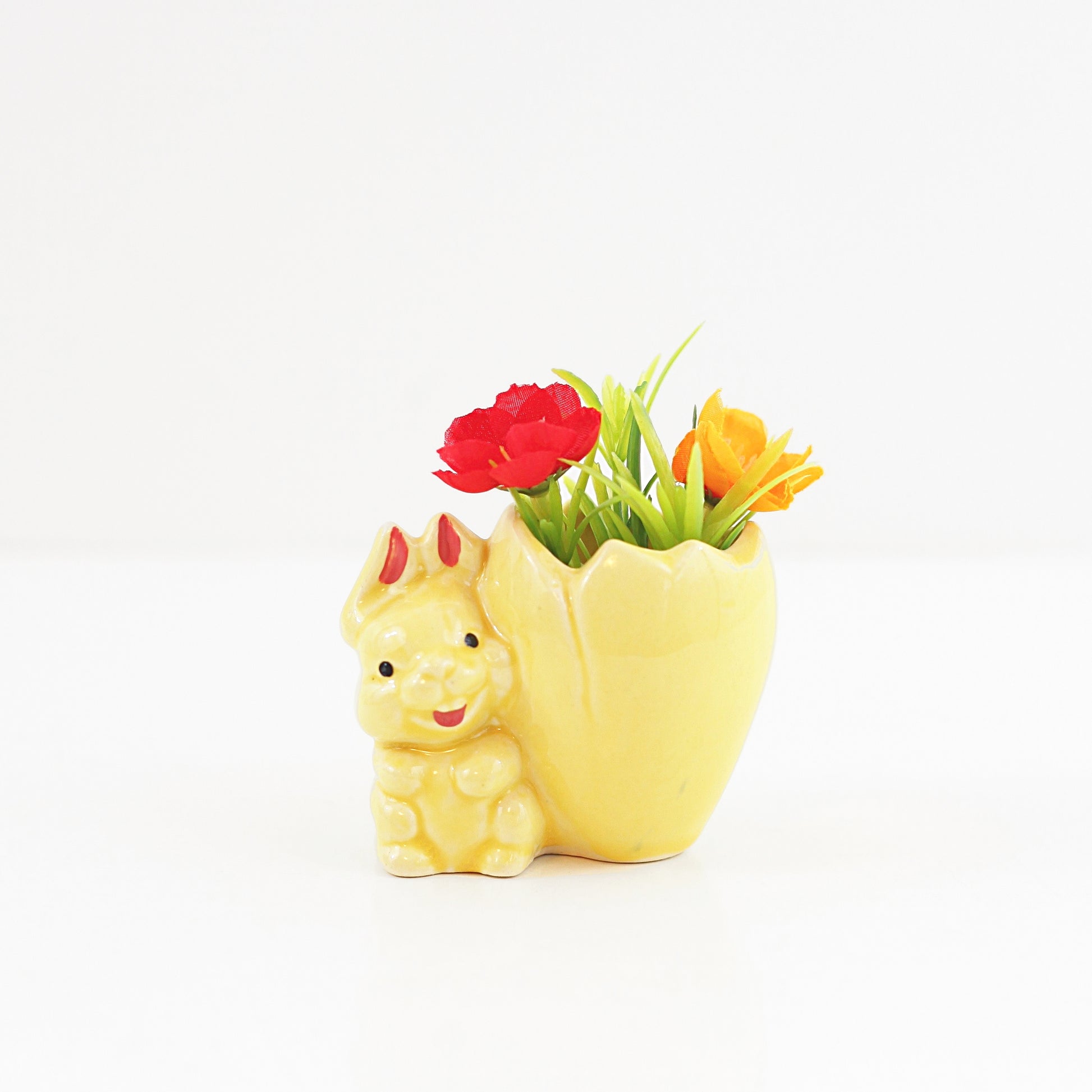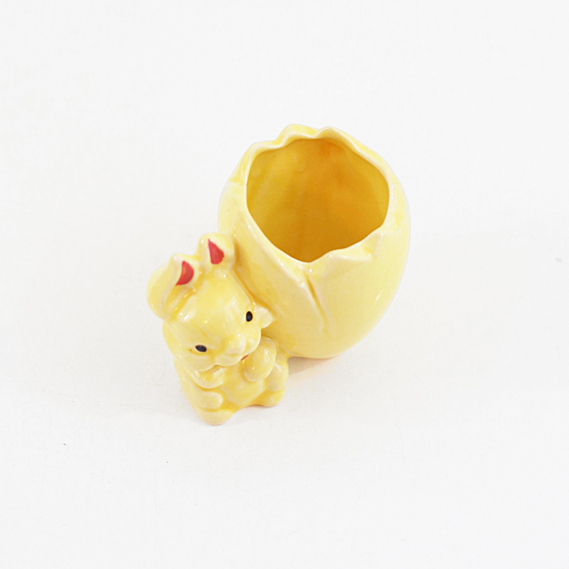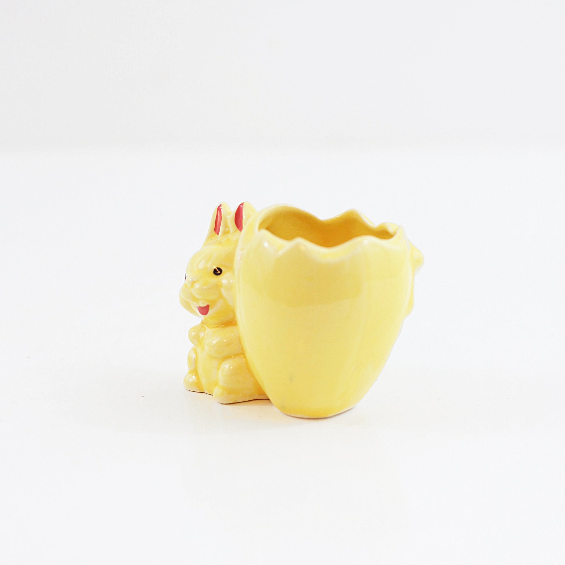 This sweet vintage Fanny Farmer egg cup is just too cute! Made in the 1940s by the McCoy pottery company for Fanny Farmer, this little bunny and his egg would have originally held a small bag of jelly beans or candy. Once the candy was gobbled up, it made a wonderful egg cup! You can use this cutie for eggs or candy, but it also makes a great succulent planter or air plant holder! This little bunny is so darn cute, you'll be looking for reasons to use it all over your house!
