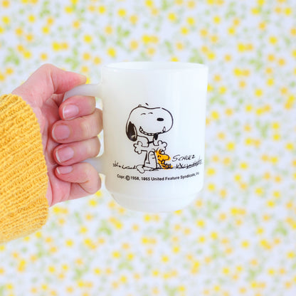 This vintage 1965 Fire King Peanuts mug is just so fun! Made by Anchor Hocking / Fire King, this milk glass mug features a cheery looking Snoopy & Woodstock on one side, and the words "This Has Been a Good Day!' on the other. Perfect for sipping your favorite coffee or tea, or for stashing pens and pencils on your desk.
