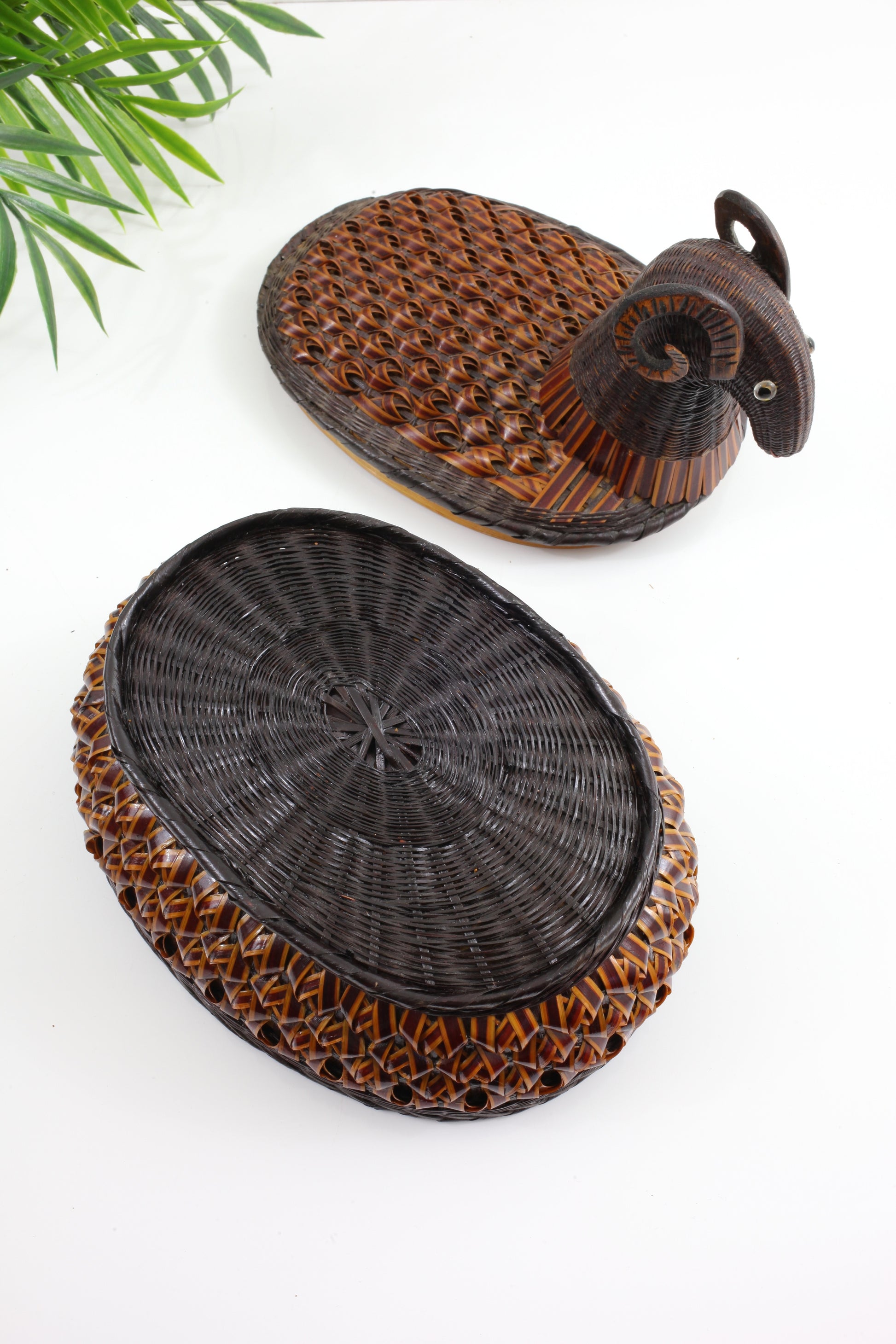 This beautiful vintage ram basket is just so sweet! Made of elegantly woven wicker with gorgeous details, this whimsical basket is sure to make you smile!