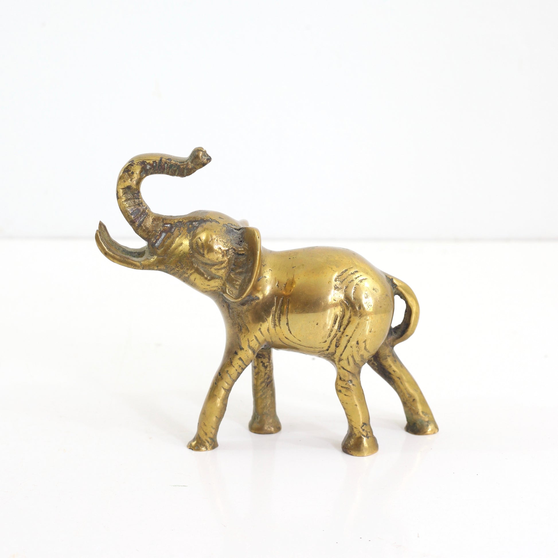 This vintage brass elephant figurine is just so sweet! Made of solid brass, this elephant has great little details (just look at those wrinkles!) and a beautiful patina. Plus, an elephant with its trunk in the air is said to be good luck -- and who couldn't use a little extra good luck? The perfect way to add some exotic vintage fun to your decor!