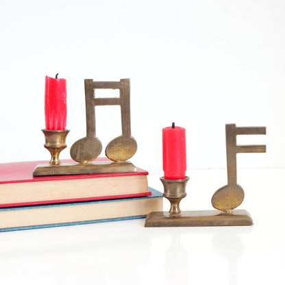 This pair of vintage brass candlesticks is just gorgeous! With a beautiful patina and warm, gorgeous golden color, these candlesticks are each in the shape of musical notes. Simple yet lovely, these beautiful candlesticks are sure to add a touch of vintage charm to your table or shelf!