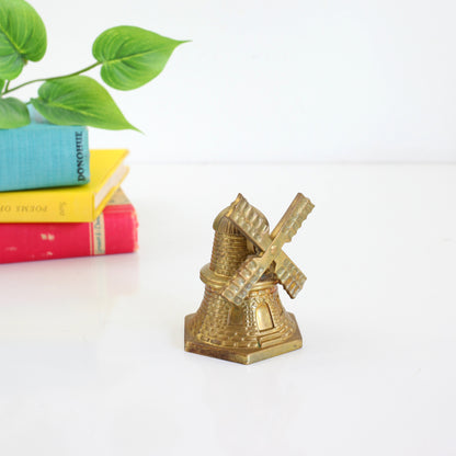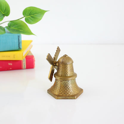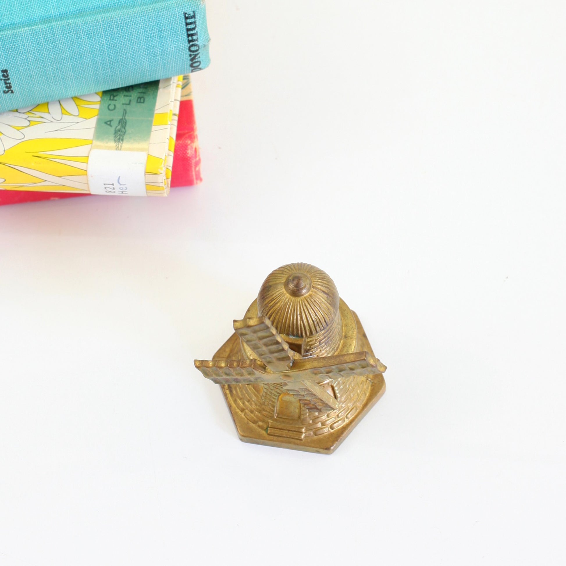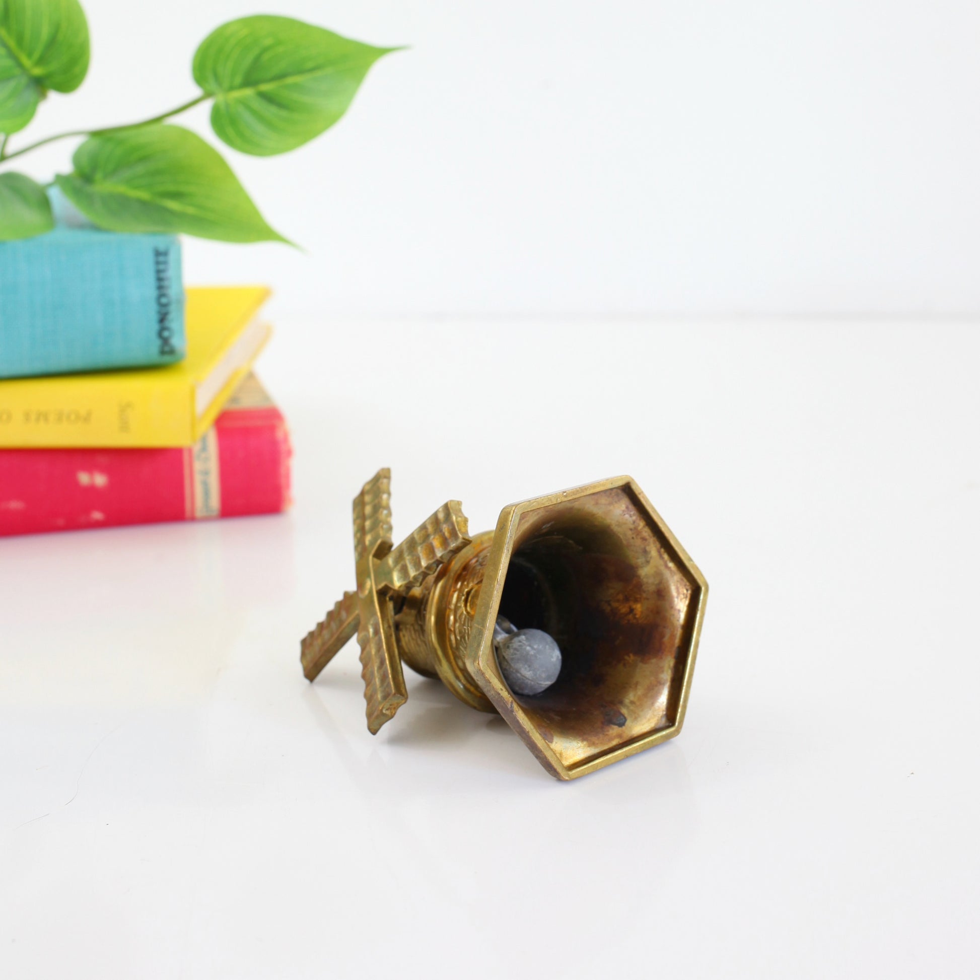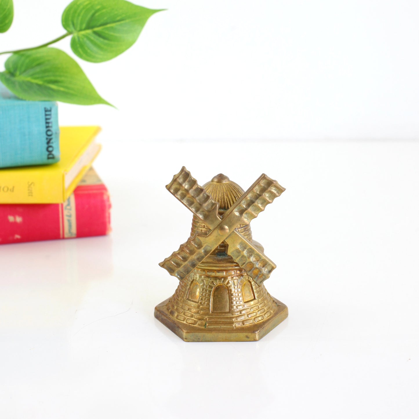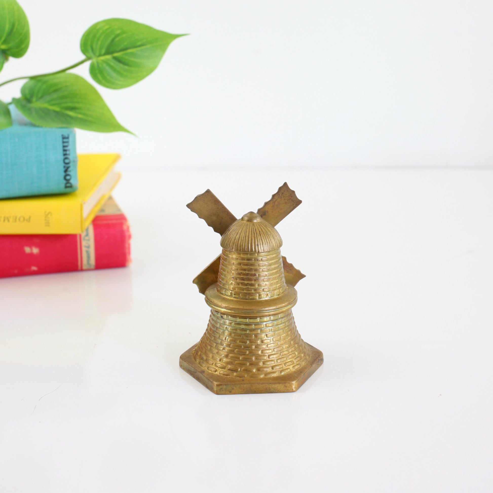 This mid century brass windmill bell is so sweet! With great details (I just love the little 'bricks'!) gorgeous golden patina, and a warm sound when rung, this little windmill is is full of charm. Makes a perfect paperweight and a charming addition to any shelf or bookcase.