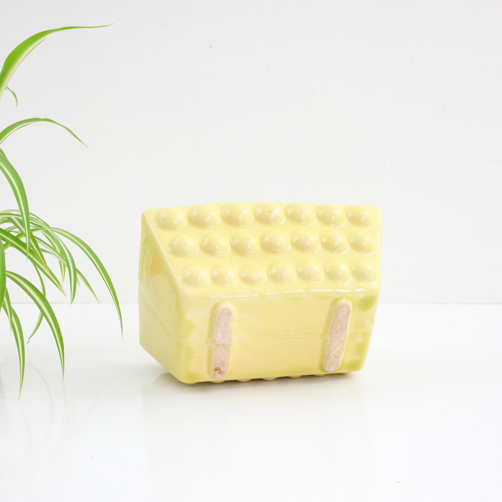 This fabulous mid century planter is so retro and fun! In a gorgeous shade of pale yellow with a bumpy raised dot design, this planter is perfect for making your favorite plant feel extra special, but also great for catching change on your dresser, holding fruit on your kitchen counter, or whatever else you can dream up!