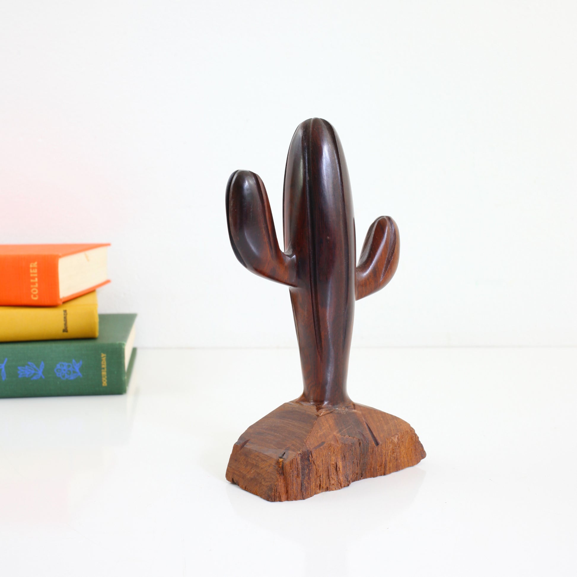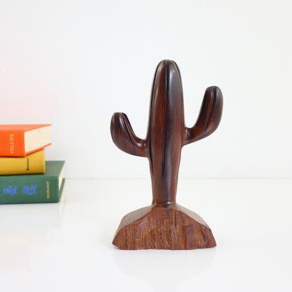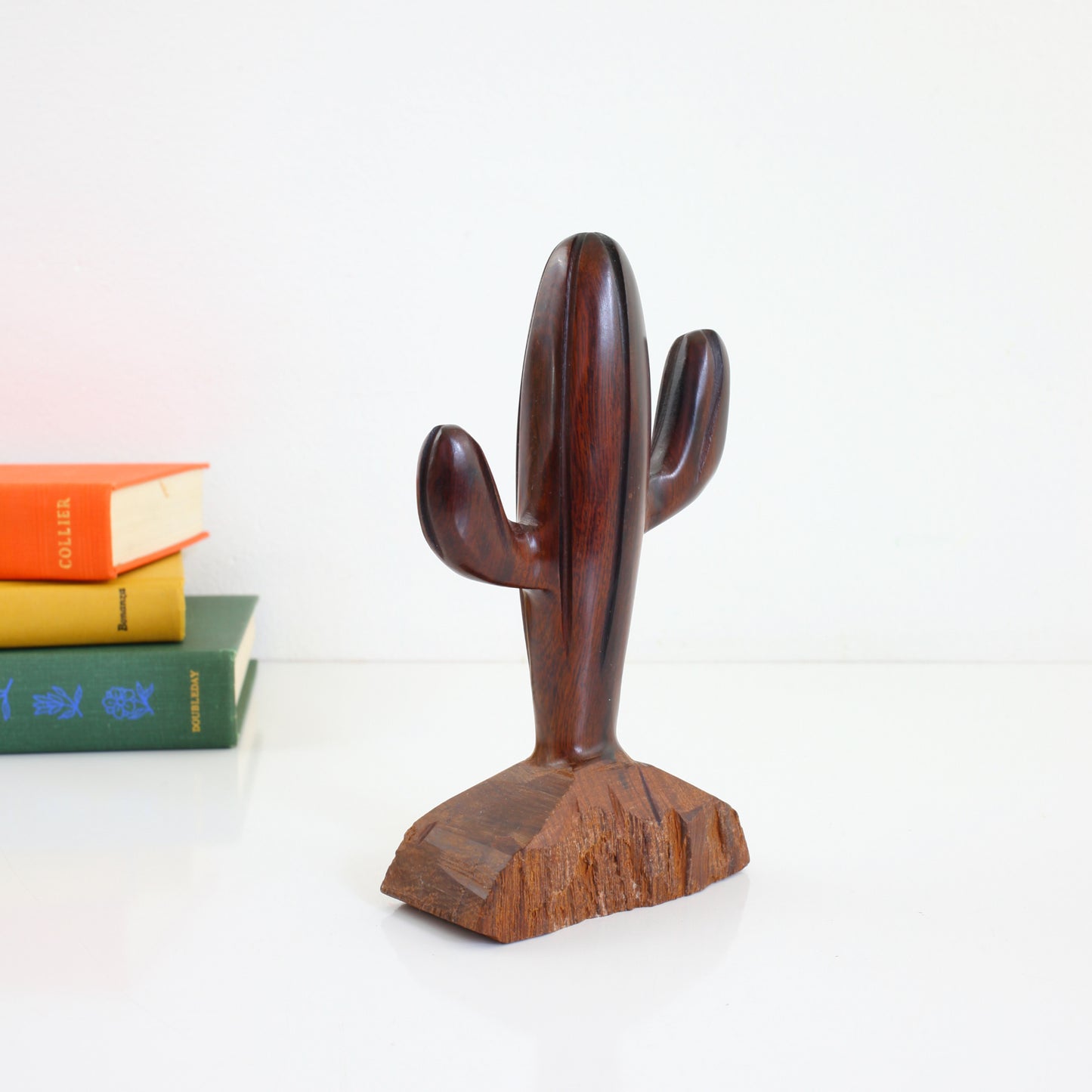 This gorgeous vintage carved wood cactus is a real stunner! Hand carved out of ironwood and polished to a soft shine, this gorgeous cactus figurine features beautiful details and a rough-edged base. Perfect for adding some boho vintage charm to your home!