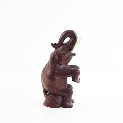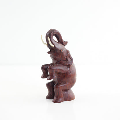 This handsome vintage hand carved elephant figurine is just gorgeous! Made of solid wood with a beautiful wood grain, this elephant is full of charming details - I just love the little 'wrinkles' in his skin! With his trunk up for good luck, this handsome elephant is sure to make you smile!