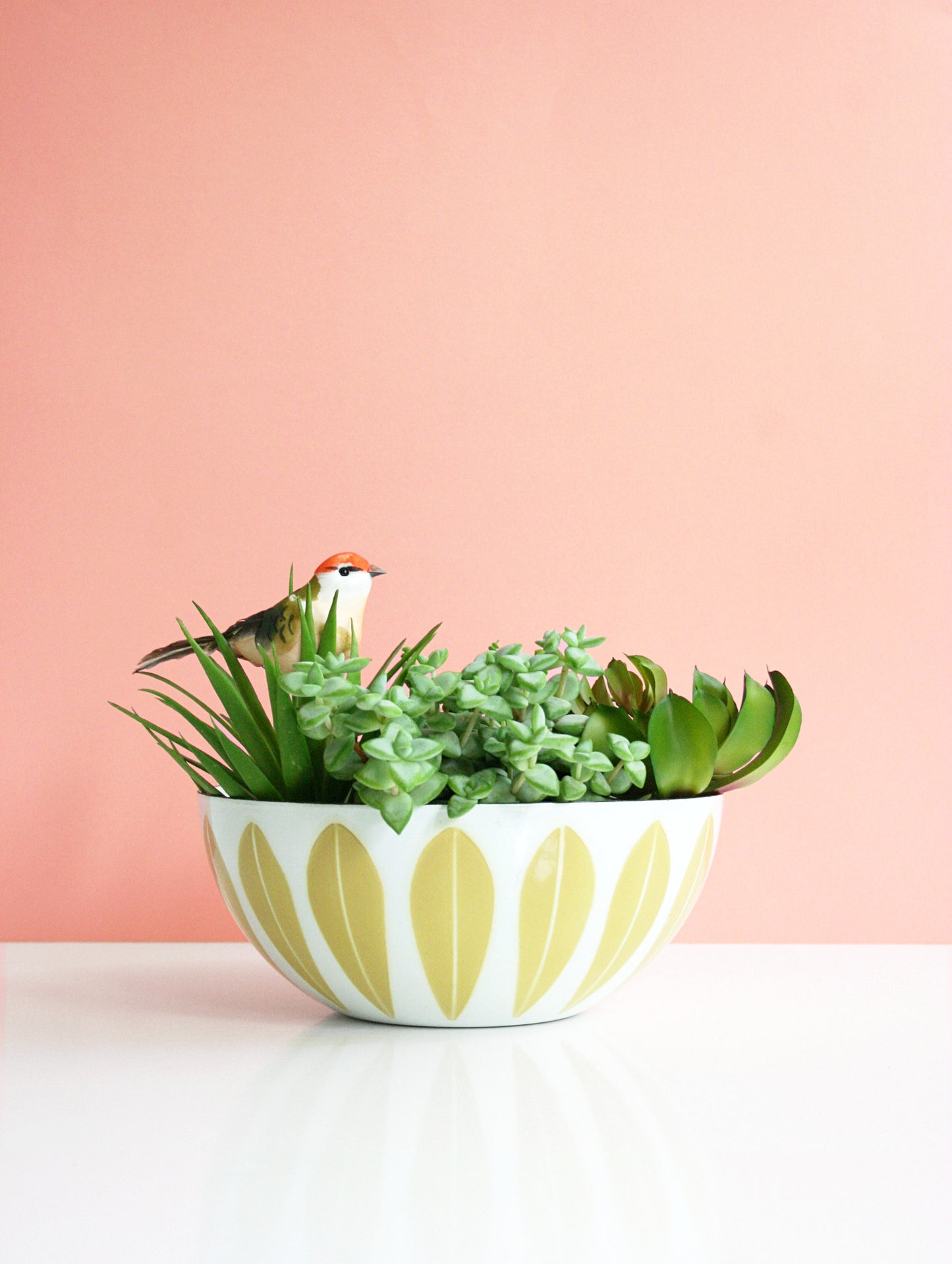 This absolutely gorgeous vintage Cathrineholm enamel lotus bowl features the iconic lotus pattern in a beautiful mustard yellow on bright white. I've also heard this colorway referred to as gold or even yellow-green, but I think mustard describes it best. Measuring 8 inches in diameter, this bowl is perfect for serving popcorn on movie night, holding fruit on your counter, or just displaying and admiring. An iconic piece of mid century design that is sure to add a pop of retro (but timeless!) fun to your home.
