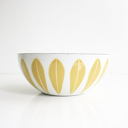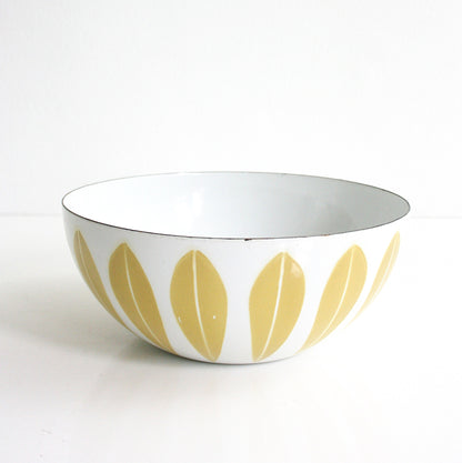 SOLD - Vintage Cathrineholm Mustard and White Enamel Lotus Bowl / Mid Century Modern 8 Inch Enamel Bowl