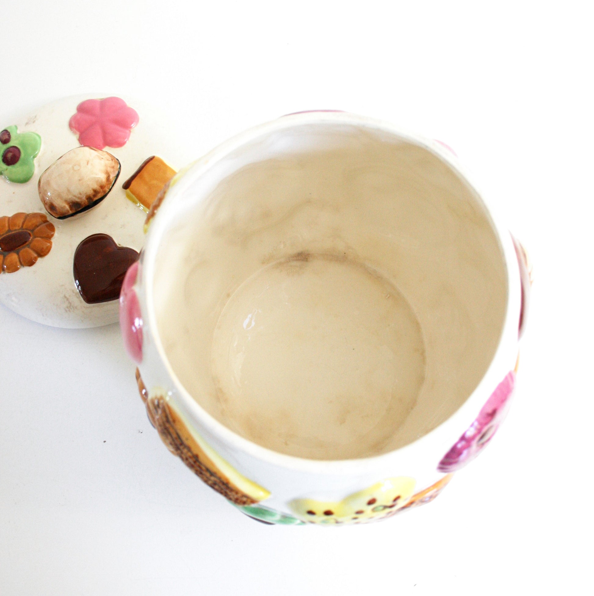 SOLD - Vintage Ceramic Cookies Cookie Jar / Mid Century Napco Cookies All Over Canister
