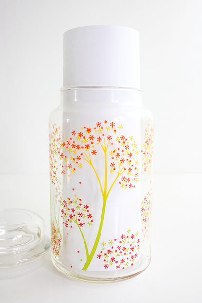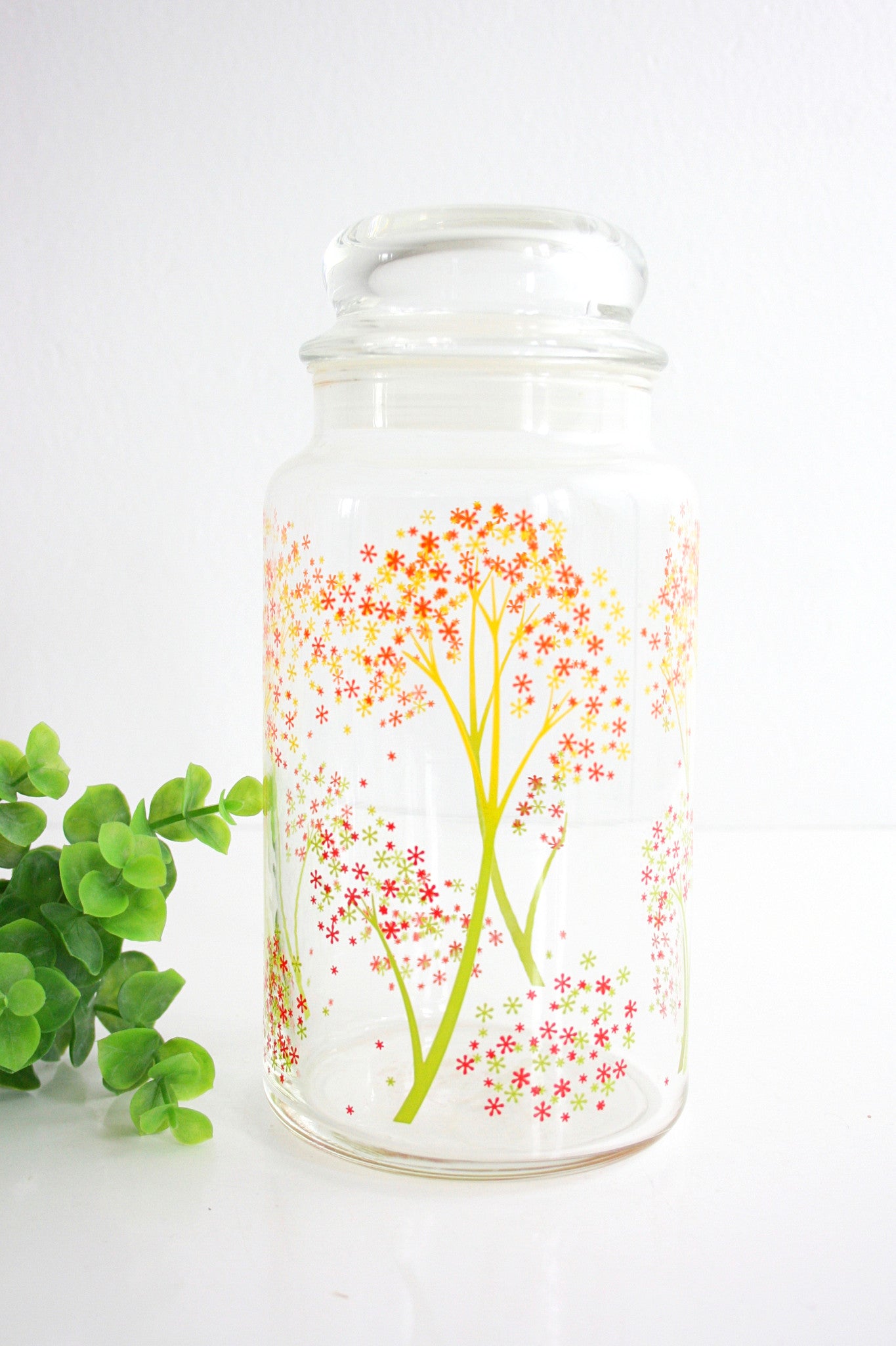 This vintage glass apothecary jar is so colorful and fun! With a bright and beautiful flower design in an array of retro colors, this glass canister has an airtight lid - making it perfect for stashing snacks in the kitchen, craft supplies on your desk, or whatever you can dream up! As fun as it is functional, you're sure to find plenty of uses for this cheery jar all over the house!