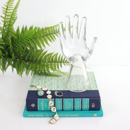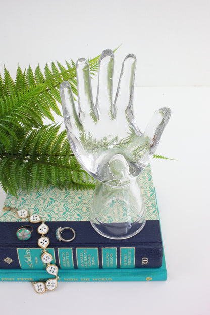 SOLD - Vintage Clear Glass Hand Ring Holder