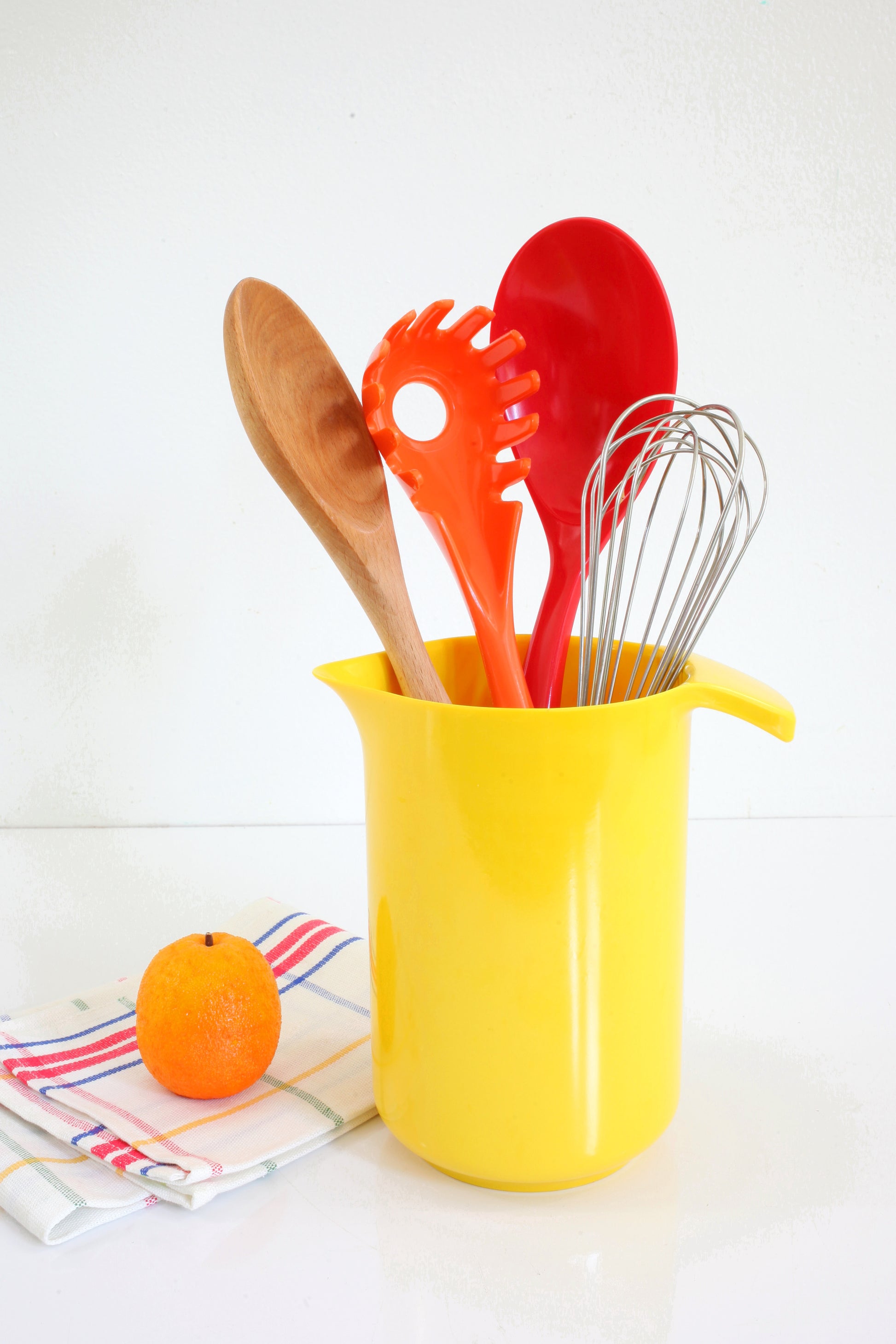 This gorgeous vintage Copco melamine pitcher is such a bright and beautiful shade of yellow! Made of sturdy and durable melamine, this pretty pitcher was made in the U.S.A. for Copco. It's perfect for holding utensils, and the spout and handle make it great for mixing and pouring, too! As beautiful as it is useful!