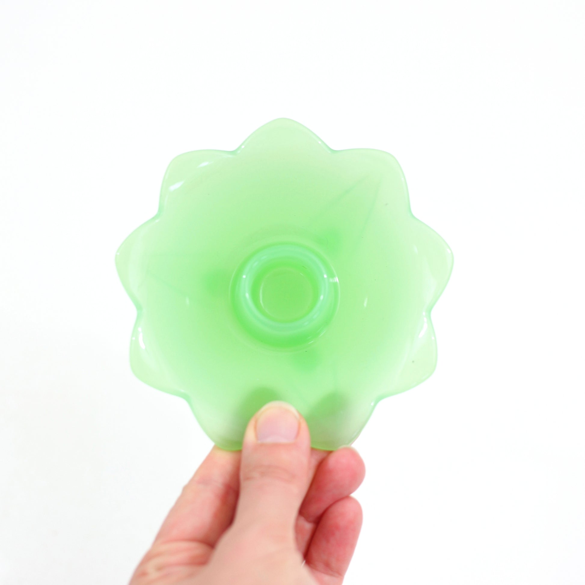 SOLD - Vintage Fenton Jadeite Flower Candle Holder