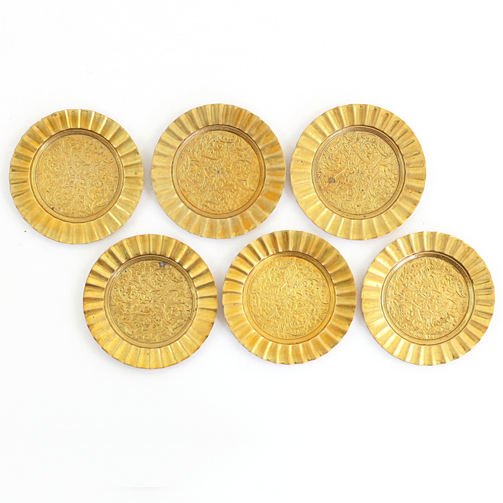 This beautiful set of vintage brass coasters is both beautiful and functional! Set includes six solid brass coasters, each with a beautiful floral pattern. Perfect for holding drinks, plants, or whatever you can dream up!