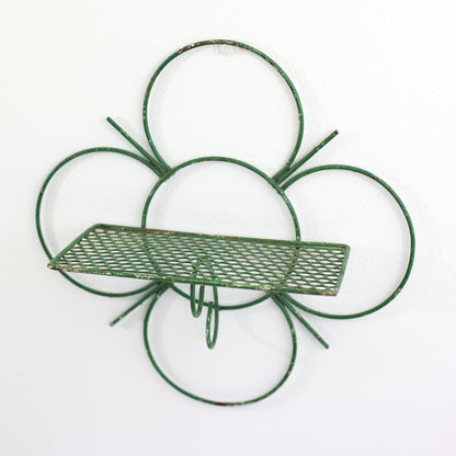 SOLD - Vintage Green Quatrefoil Metal Wall Shelf