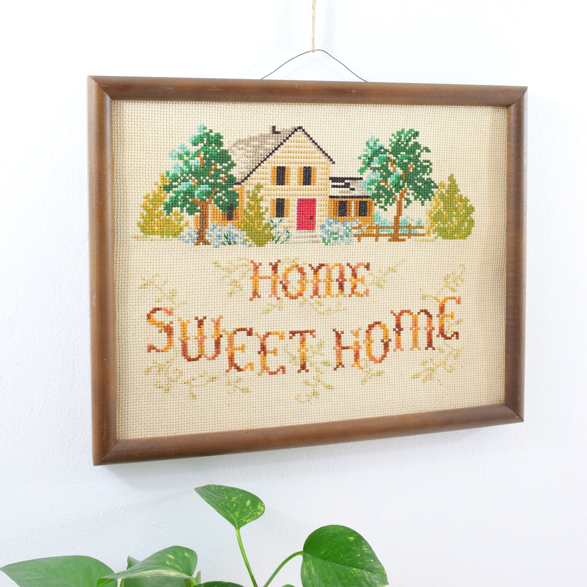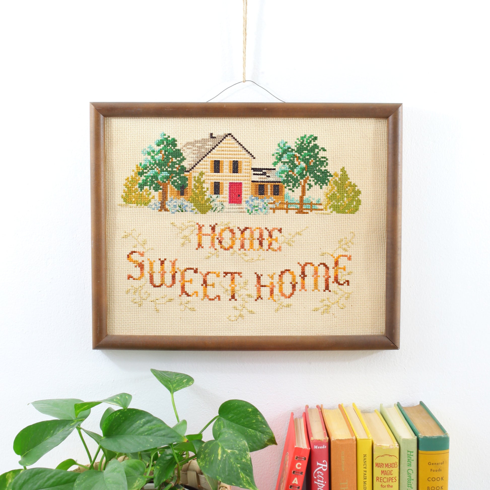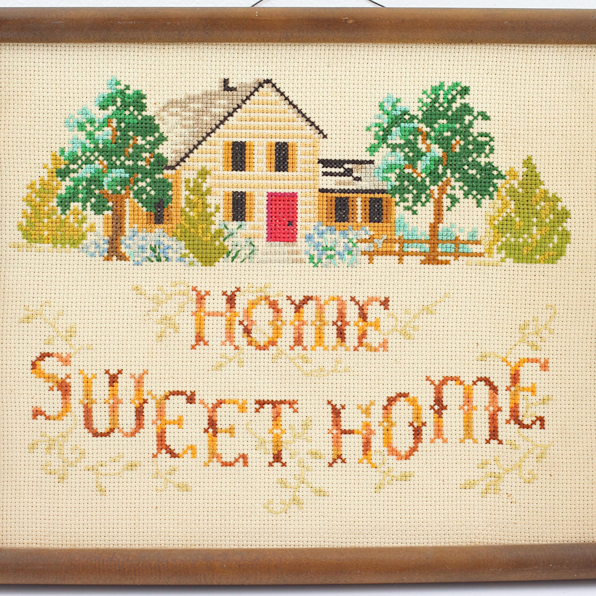 SOLD - Vintage Home Sweet Home Framed Cross Stitch