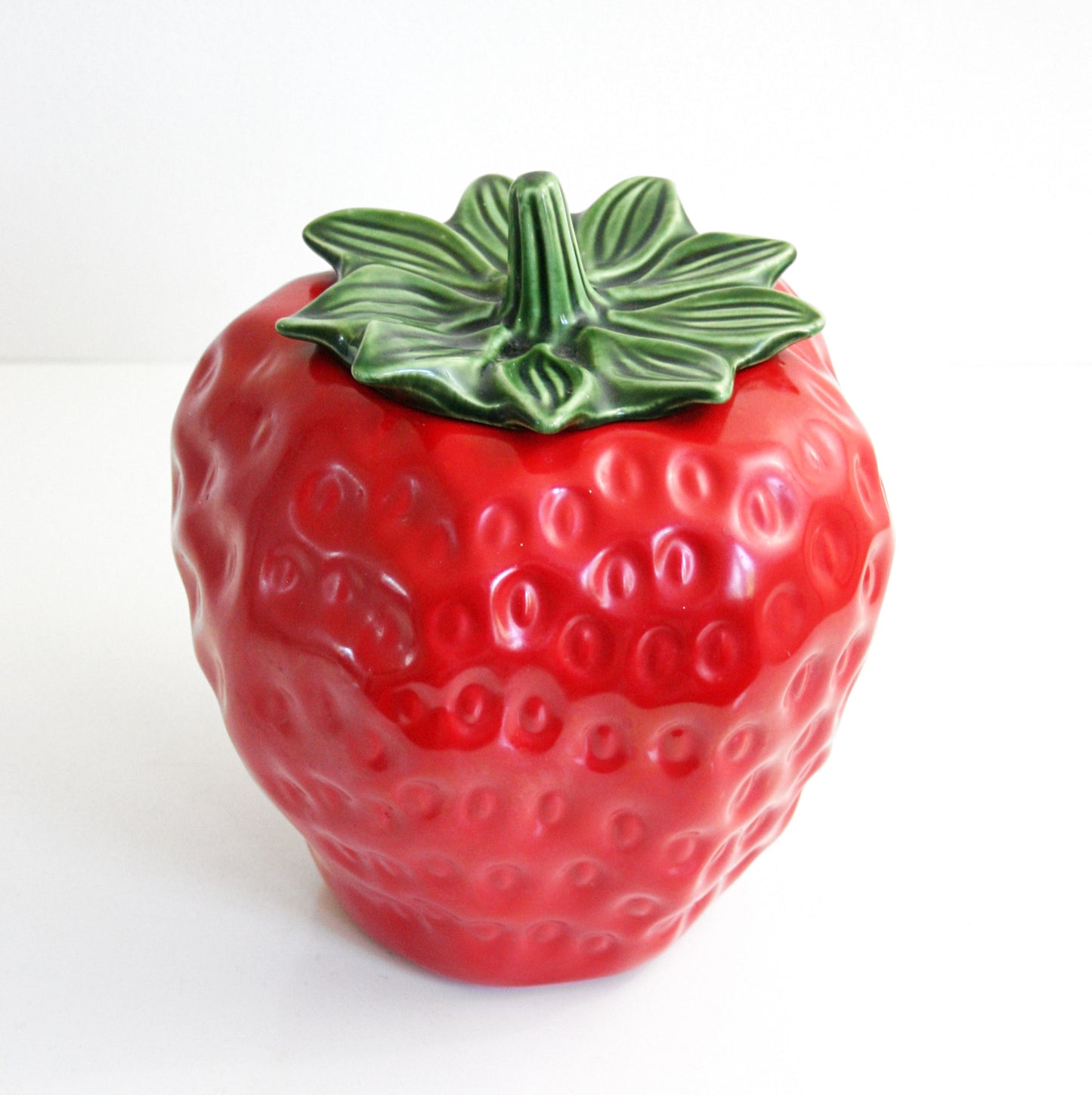 SOLD - Vintage McCoy Strawberry Cookie Jar / Mid Century McCoy Ceramic Fruit Canister