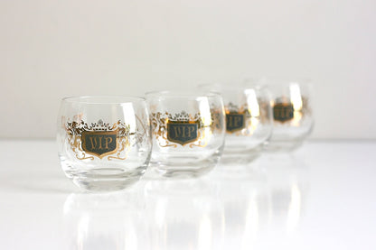 SOLD - Vintage Mid Century Black and Gold Roly Poly VIP Glasses