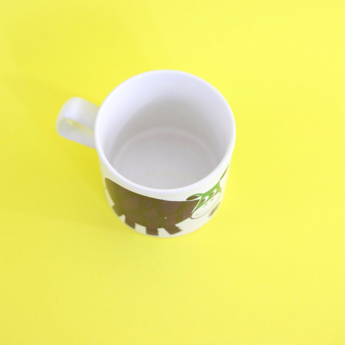 ➝ In very good condition. No chips or repairs. One small fleck of paint loss on the purple hippo, and one small spot of mis-placed purple paint on the handle. Inside and outside of surface of mug shows crazing. Overall, a super fun mug with plenty of life left in it!