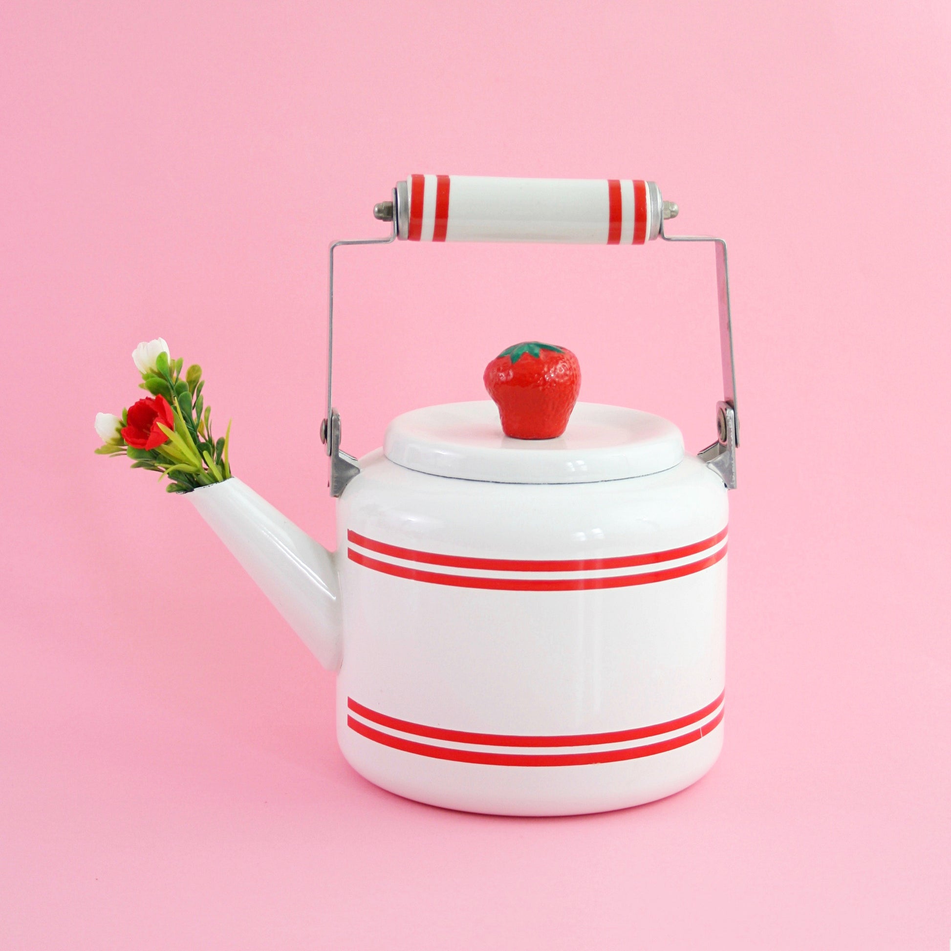 SOLD - Vintage Strawberry Enamel Tea Kettle
