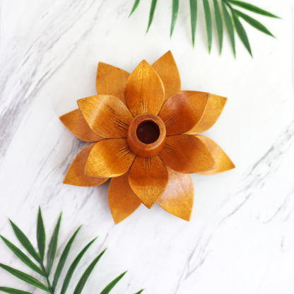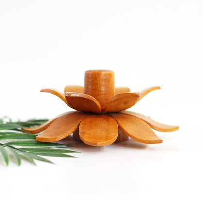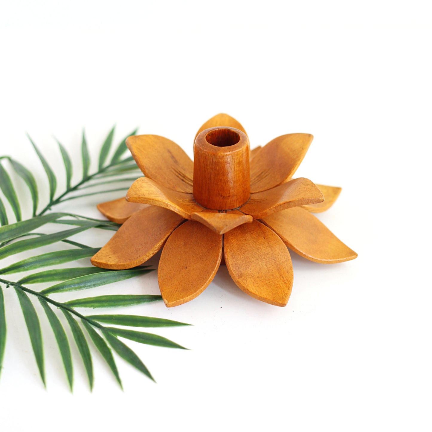 This beautiful vintage wooden candle holder is a real stunner! Each petal is made of bent wood with a gorgeous wood grain. The perfect way to add a bit of boho charm to your table or shelf!